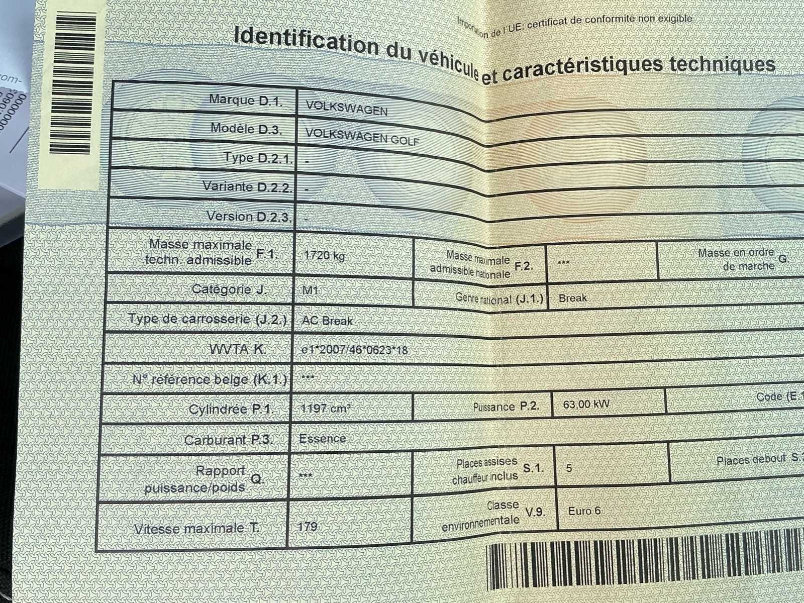 Zeer mooie Golf 7 1.2 TSi type Lounge. No Merk: Volkswagen Model: Golf Type: 7 TSi lounge Bouwjaar: 2015 Afgelezen kilometerstand: 207735km Cilinderinhoud: 1197cc Vermogen (kW): 81kW Brandstof: Benzine Chassisnummer: WVWZZZAUGW1811452(01) Laadvermogen: 600kg Datum eerste toelating: 27/11/2015 Vermogen (pk): 110hp Energielabel: A Aandrijving: Voorwielaandrijving Aantal zitplaatsen: 5 Maximaal trekgewicht ongeremd: 630kg Maximaal trekgewicht geremd: 1300kg Kleur: Zwart Transmissie: Handgeschakeld Drive type: Front wheel Stuurwiel: Links Emissieklasse: Euro 6 Aantal deuren: 5 Aantal sleutels: 2 Ledig gewicht: 1200kg Aantal cilinders: 4 Carrosserie: Ok Nationaliteit documenten: België Onderhoudshistorie: Ok Gelijkvormigheidsattest aanwezig: true Carpass: true Start en rijdt: Ok Keuringsrapport geldig tot: 30/01/2027 startinformatie : Ok Vavato voert geen technische keuring uit.: true Airconditioning: true Navigatie: true Inschrijvingsbewijs - deel 1 : Aanwezig Inschrijvingsbewijs - deel 2: Aanwezig