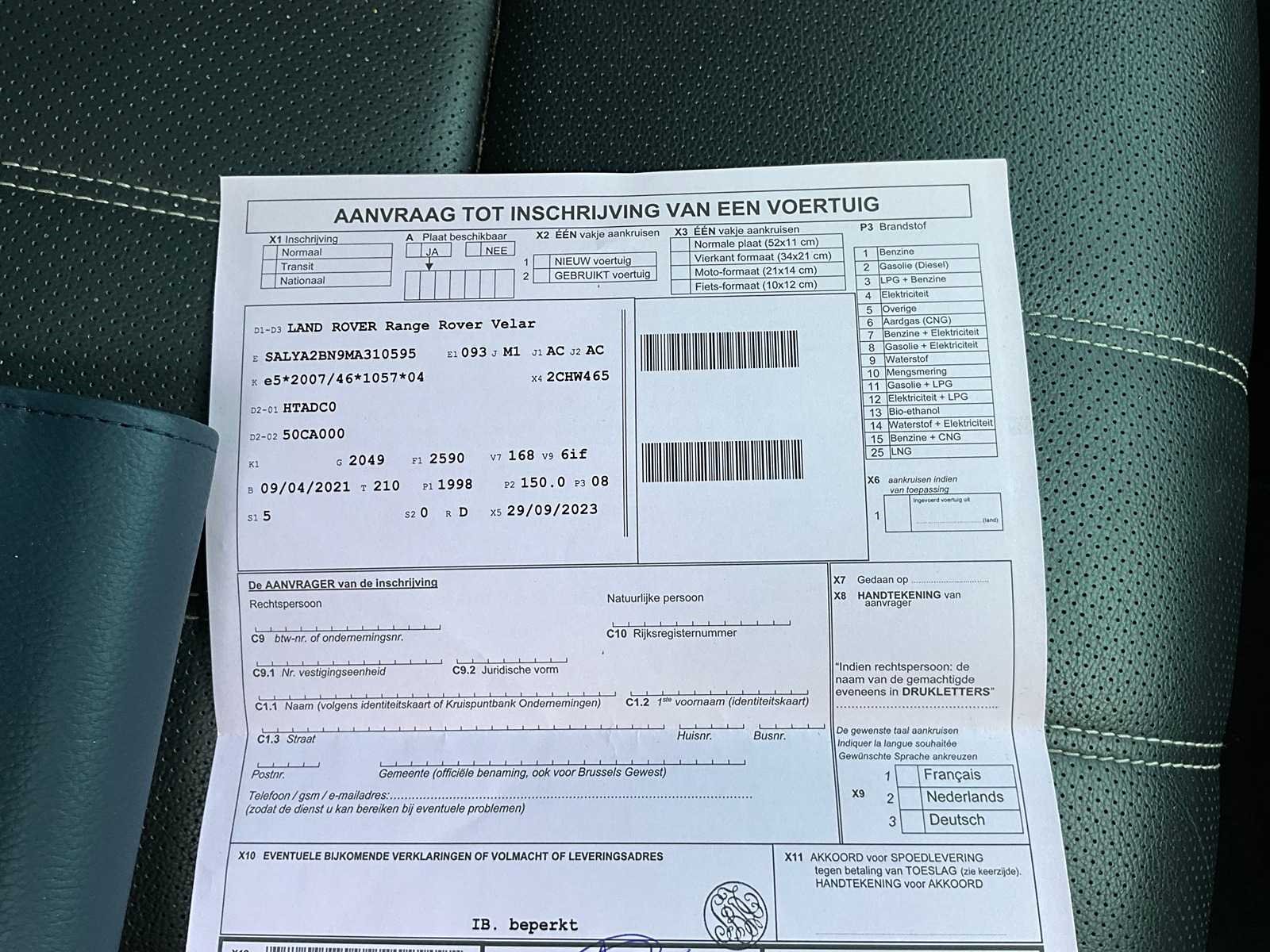 Heeft recent groot onderhoud gehad bij Range Rover zelf de erkende garage. Heeft recent ook nieuwe banden gekregen. Full option! Heeft een verlengde fabriek garantie 15/06/2026 Nee Merk: Land Rover Type: Range Rover Velar Bouwjaar: 2021 Afgelezen kilometerstand: 112000km Cilinderinhoud: 1998cc Vermogen (kW): 150kW Brandstof: Diesel + Elektr. Chassisnummer: SALYA2BN9MA310595 Datum eerste toelating: 09/04/2021 Aantal zitplaatsen: 5 Transmissie: Automaat Emissieklasse: Euro 6d Aantal deuren: 5 Aantal sleutels: 2 Nationaliteit documenten: Belgisch Start en rijdt: Treu Vavato voert geen technische keuring uit.: true Airconditioning: true Navigatie: true Xenon verlichting: true LED-koplampen: true Leder bekleed: true Inschrijvingsbewijs - deel 1 : Aanwezig Inschrijvingsbewijs - deel 2: Aanwezig