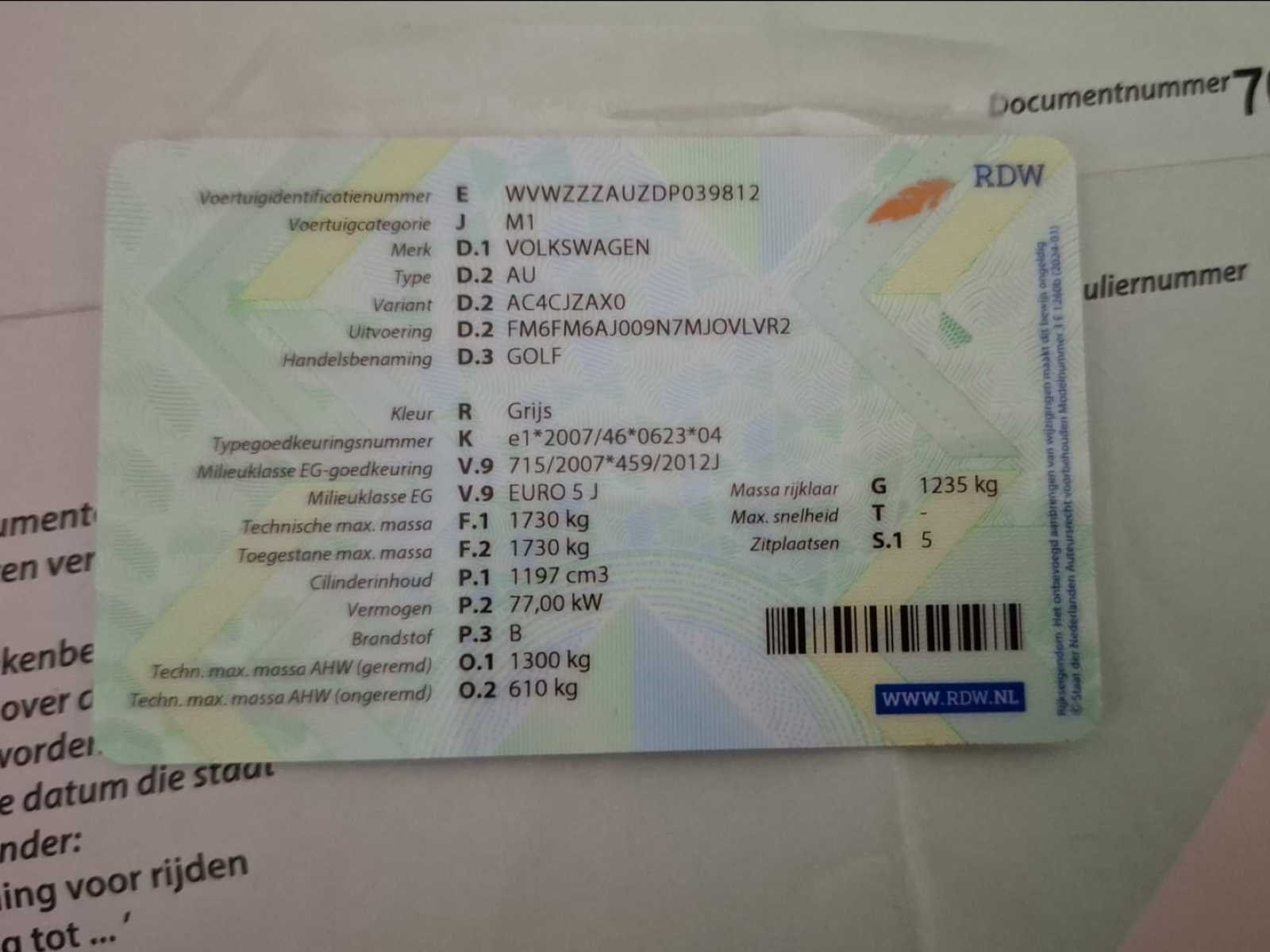 No Merk: Volkswagen Model: Golf 7 Type: 1.2 TSI Bouwjaar: 2013 Afgelezen kilometerstand: 307000km Cilinderinhoud: 1197cc Vermogen (kW): 77kW Brandstof: Benzine Chassisnummer: WVWZZZAUZDP039812 Laadvermogen: 430kg Datum eerste toelating: 20-2-2013 Datum eerste toelating (NL): 20-2-2013 Vermogen (pk): 105hp Energielabel: Euro 5 Aandrijving: FWD Aantal zitplaatsen: 5 Kleur: Grijs Transmissie: Manueel Drive type: Front wheel USA titel: Neen Stuurwiel: Links Emissieklasse: EU5 Aantal deuren: 5 Aantal sleutels: 1 Ledig gewicht: 1300kg Aantal cilinders: 4 Carrosserie: Hatchback Nationaliteit documenten: Nederland Start en rijdt: Ja Technische fiche: true startinformatie : Start en rijdt Zichtbare schade: Gebruikssporen Self drive export possible : true Vavato voert geen technische keuring uit.: true Airconditioning: true Navigatie: true LED-koplampen: true Inschrijvingsbewijs - deel 1 : Aanwezig Inschrijvingsbewijs - deel 2: Aanwezig