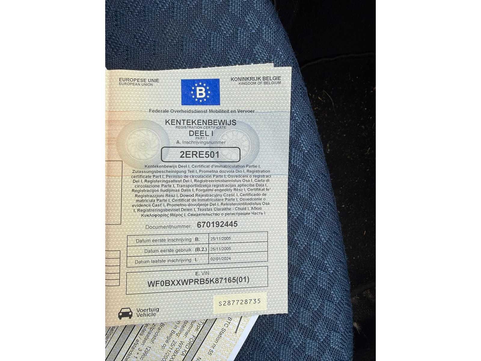 Nee Merk: Ford Model: KA Bouwjaar: 2005 Cilinderinhoud: 1299cc Vermogen (kW): 44kW Tellerstand niet afleesbaar: true Chassisnummer: WF0BXXWPRB5K87165 Nationaliteit documenten: Belgisch Start en rijdt: Ja Keuringsrapport geldig tot: ROOD Vavato voert geen technische keuring uit.: true Inschrijvingsbewijs - deel 1 : Aanwezig Inschrijvingsbewijs - deel 2: Aanwezig