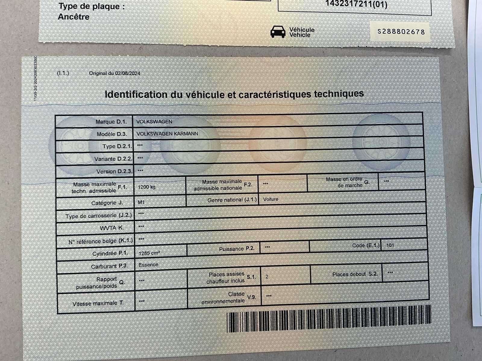 De wagen bevindt zich in uitstekende staat! Altijd binnen gestaan en op tijd onderhouden. Nee Merk: Volkswagen Bouwjaar: 1973 Chassisnummer: 1432317211 Afgelezen mijlenstand: 1968mi Model: Karmann Brandstof: Benzine Datum eerste inschrijving: 28/02/1973 Datum eerste toelating: 28/02/1973 Boorddocumenten aanwezig?: true Nationaliteit documenten: Belgisch Transmissie: Manueel Aantal deuren: 2 Aantal zitplaatsen: 2 Kleur: Licht blauw