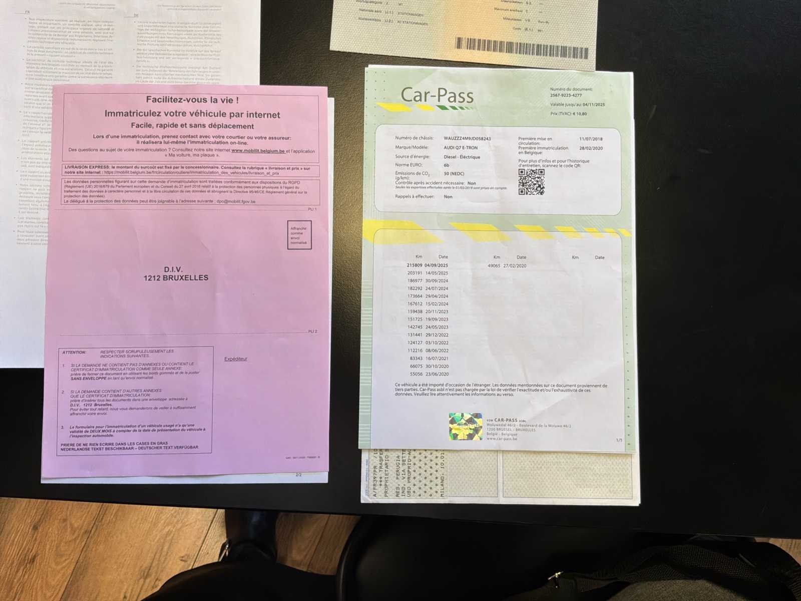 No Merk: Audi Model: E-tron 3.0 TDi V6 Tiptronic QUATTRO Type: Q7 Bouwjaar: 2018 Afgelezen kilometerstand: 215000km Cilinderinhoud: 2967cc Vermogen (kW): 190kW Brandstof: Diesel / Elektro Chassisnummer: WAUZZZ4M9JD058243 Datum eerste toelating: 07/2018 APK vervaldatum: 04/11/2025 Vermogen (pk): 258hp Energielabel: Euro6b Aandrijving: Ja Aantal zitplaatsen: 7 Kleur: Zwart Transmissie: Automatisch Stuurwiel: Links Aantal deuren: 5 Aantal sleutels: 2 Velgmaat: 20 Aantal cilinders: 6 Nationaliteit documenten: België Onderhoudshistorie: Oké Gelijkvormigheidsattest aanwezig: true Carpass: true Start en rijdt: Oké startinformatie : Oké oplaadkabel : Ja Vavato voert geen technische keuring uit.: true Airconditioning: true Navigatie: true Xenon verlichting: true LED-koplampen: true Leder bekleed: true Inschrijvingsbewijs - deel 1 : Oké Inschrijvingsbewijs - deel 2: Oké