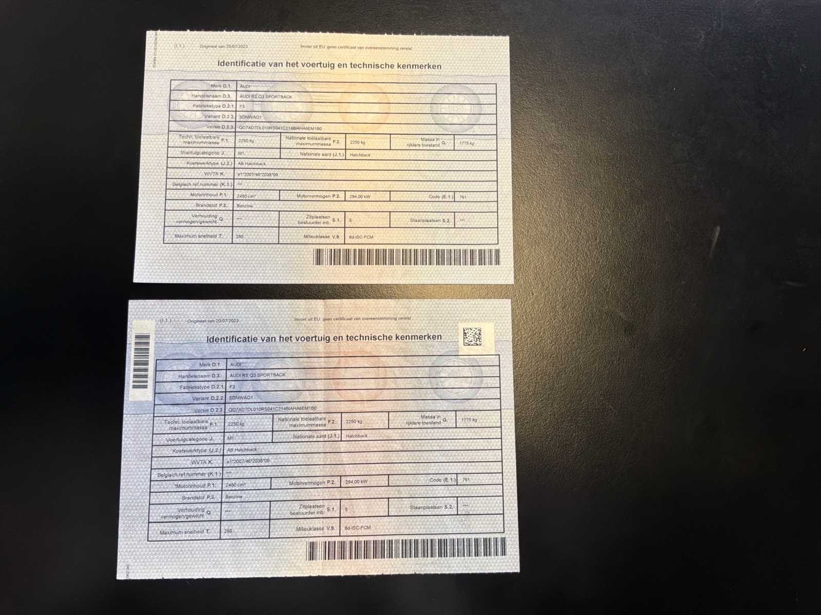 No Merk: Audi Model: RS Q3 Type: Sport Back Bouwjaar: 2022 Afgelezen kilometerstand: 80700km Cilinderinhoud: 2480cc Vermogen (kW): 294kW Brandstof: Benzine Chassisnummer: WUAZZZF34N1903520 Datum eerste toelating: 03.2022 APK vervaldatum: 15/10/26 Vermogen (pk): 400hp Energielabel: Euro6b Aandrijving: Oké Aantal zitplaatsen: 5 Kleur: DAYTONA GREY Transmissie: Automatisch Stuurwiel: Links Emissieklasse: Euro6d Aantal deuren: 5 Aantal sleutels: 2 Aantal cilinders: 5 Nationaliteit documenten: België Onderhoudshistorie: Oké Gelijkvormigheidsattest aanwezig: true Carpass: true Start en rijdt: Oké Keuringsrapport geldig tot: 15/10/26 startinformatie : Oké Vavato voert geen technische keuring uit.: true Airconditioning: true Navigatie: true LED-koplampen: true Leder bekleed: true Inschrijvingsbewijs - deel 1 : Ja Inschrijvingsbewijs - deel 2: Ja