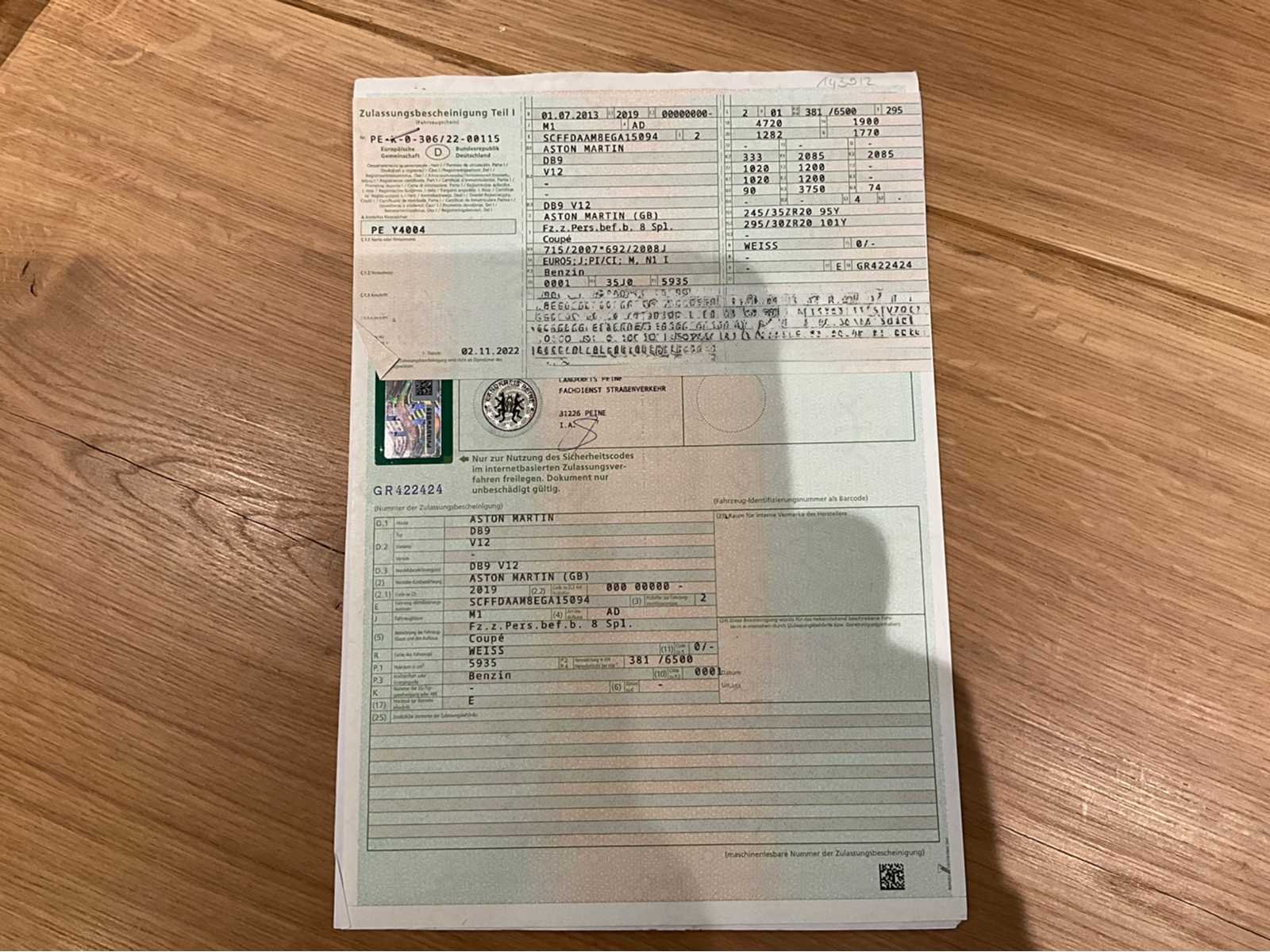 Voertuig in uitstekende staat werkt perfect No Merk: Aston Martin Model: DB9 Type: V12 Bouwjaar: 2013 Afgelezen kilometerstand: 59332km Cilinderinhoud: 5935cc Vermogen (kW): 381kW Brandstof: Benzine Chassisnummer: SCFFDAAM8EGA15094 Datum eerste toelating: 01/07/2013 Kleur: WIT Transmissie: Automaat Aantal cilinders: 12 Nationaliteit documenten: Duitsland Start en rijdt: Ja startinformatie : Ja Leder bekleed: true