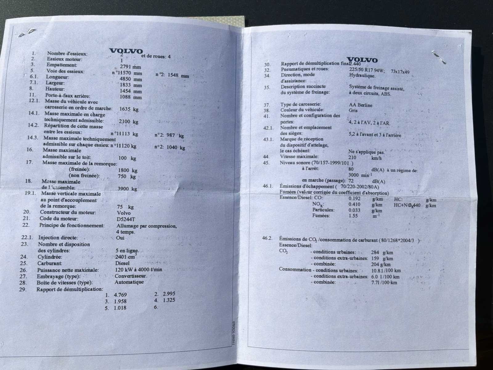 No Merk: Volvo Model: S80 Type: TS79 Bouwjaar: 2006 Afgelezen kilometerstand: 320006km Cilinderinhoud: 2401cc Vermogen (kW): 120kW Brandstof: Diesel Chassisnummer: YV1TS796961440356 Laadvermogen: 1635kg Vermogen (pk): 2401hp Aandrijving: Ja Aantal zitplaatsen: 4 Kleur: Grijs Transmissie: Automatisch Stuurwiel: Ja Emissieklasse: Euro 3 Aantal deuren: 5 Aantal sleutels: 1 Aantal cilinders: 5 Carrosserie: Sedan Nationaliteit documenten: België Gelijkvormigheidsattest aanwezig: true Start en rijdt: Ja startinformatie : Ja Zichtbare schade: Nee