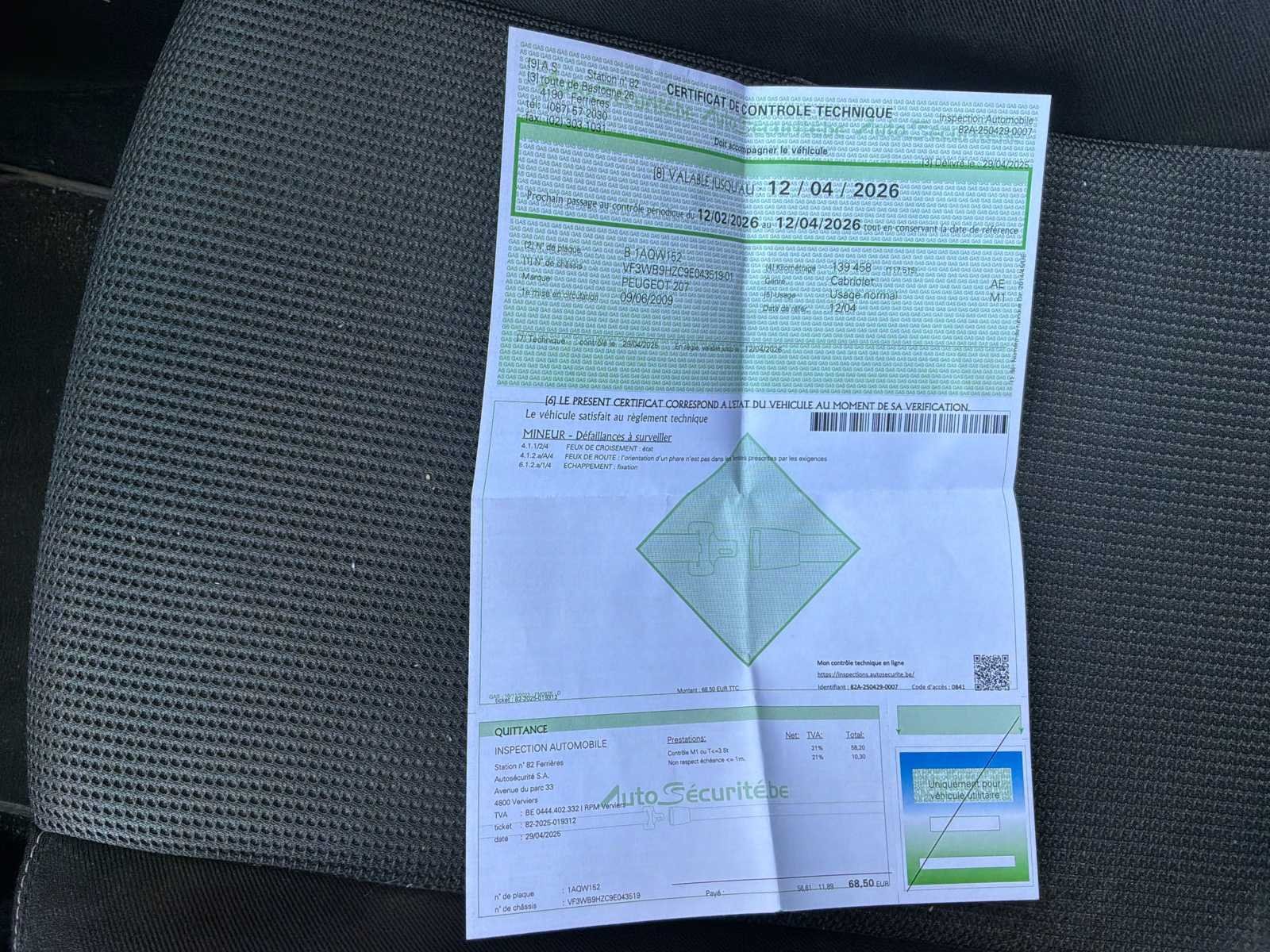 De originele radio zal worden opnieuw geïnstalleerd voor de verkoop van het voertuig, evenals de banden die op hun originele velgen (17 inch aluminium velgen) worden gemonteerd. Het voertuig is uitgerust met: • Omkeersensoren • Stuurbekrachtiging • Airconditioning • Kamerspiegels met verlichting Schone auto en klaar om de weg op te gaan. Nee Merk: Peugeot Model: 207 Type: WB9HZC Bouwjaar: 2009 Afgelezen kilometerstand: 158269km Cilinderinhoud: 1560cc Vermogen (kW): 80kW Brandstof: Diesel Chassisnummer: VF3WB9HZC9E043519 Datum eerste toelating (NL): 2009 Aandrijving: Ja Aantal zitplaatsen: 4 Kleur: Grijs Transmissie: Handboek Stuurwiel: Links Aantal deuren: 2 Aantal sleutels: 1 Ledig gewicht: 1480kg Nationaliteit documenten: België CO2-uitstoot NEDC: 130 Gelijkvormigheidsattest aanwezig: true Start en rijdt: Ja startinformatie : Ja Zichtbare schade: Nee