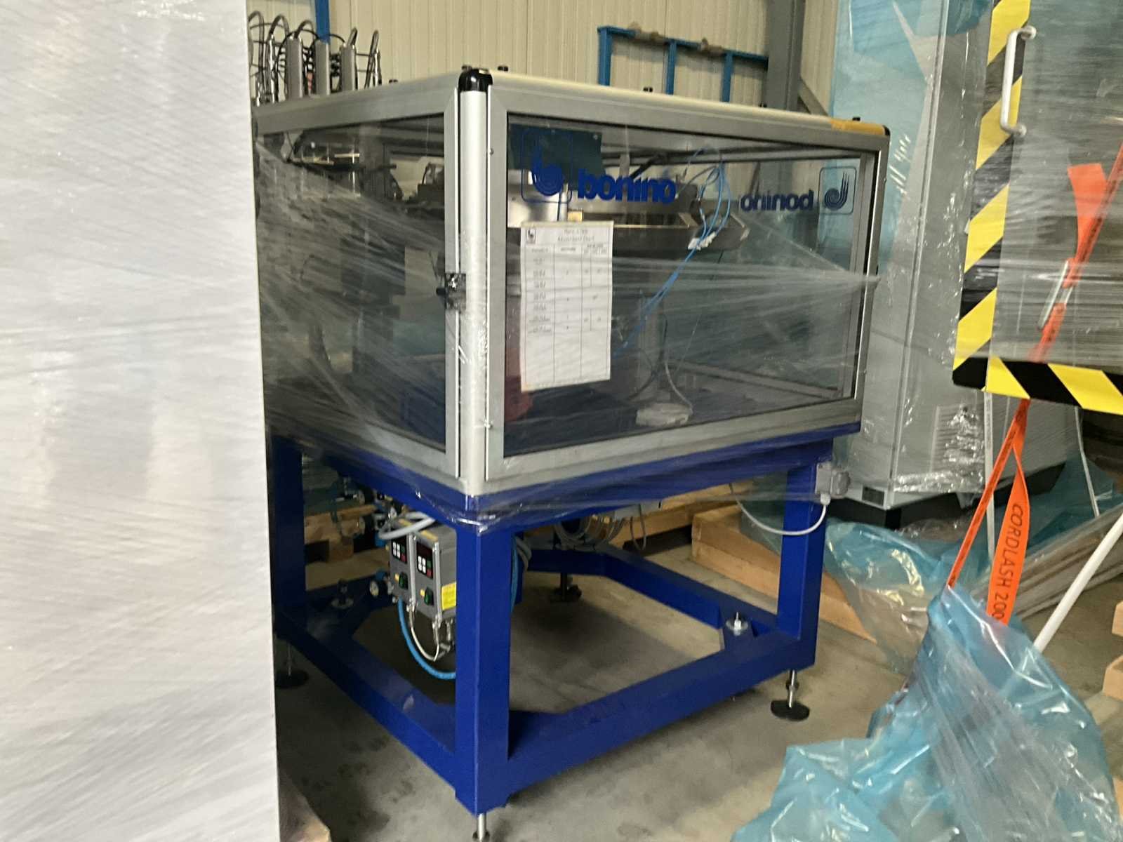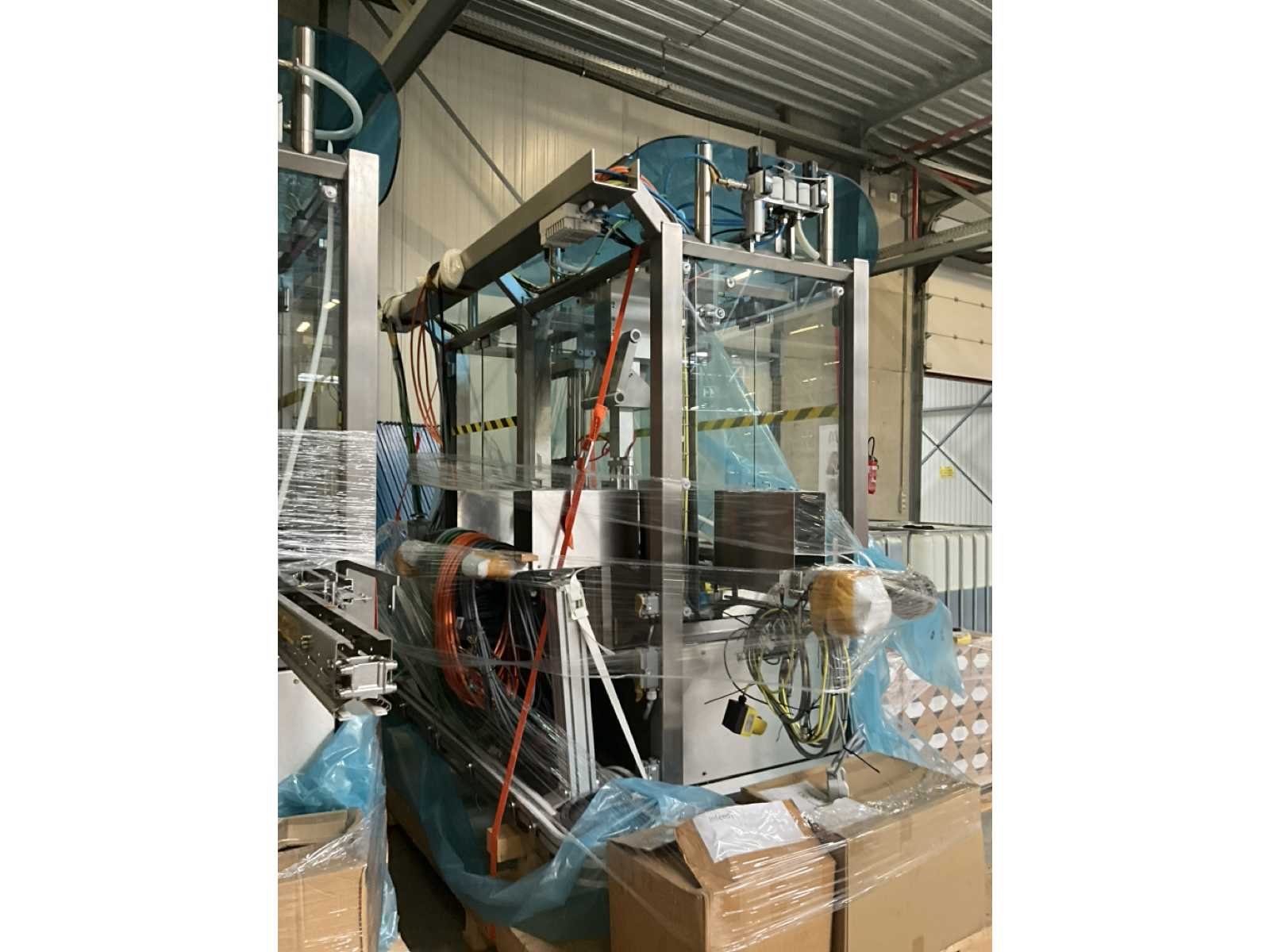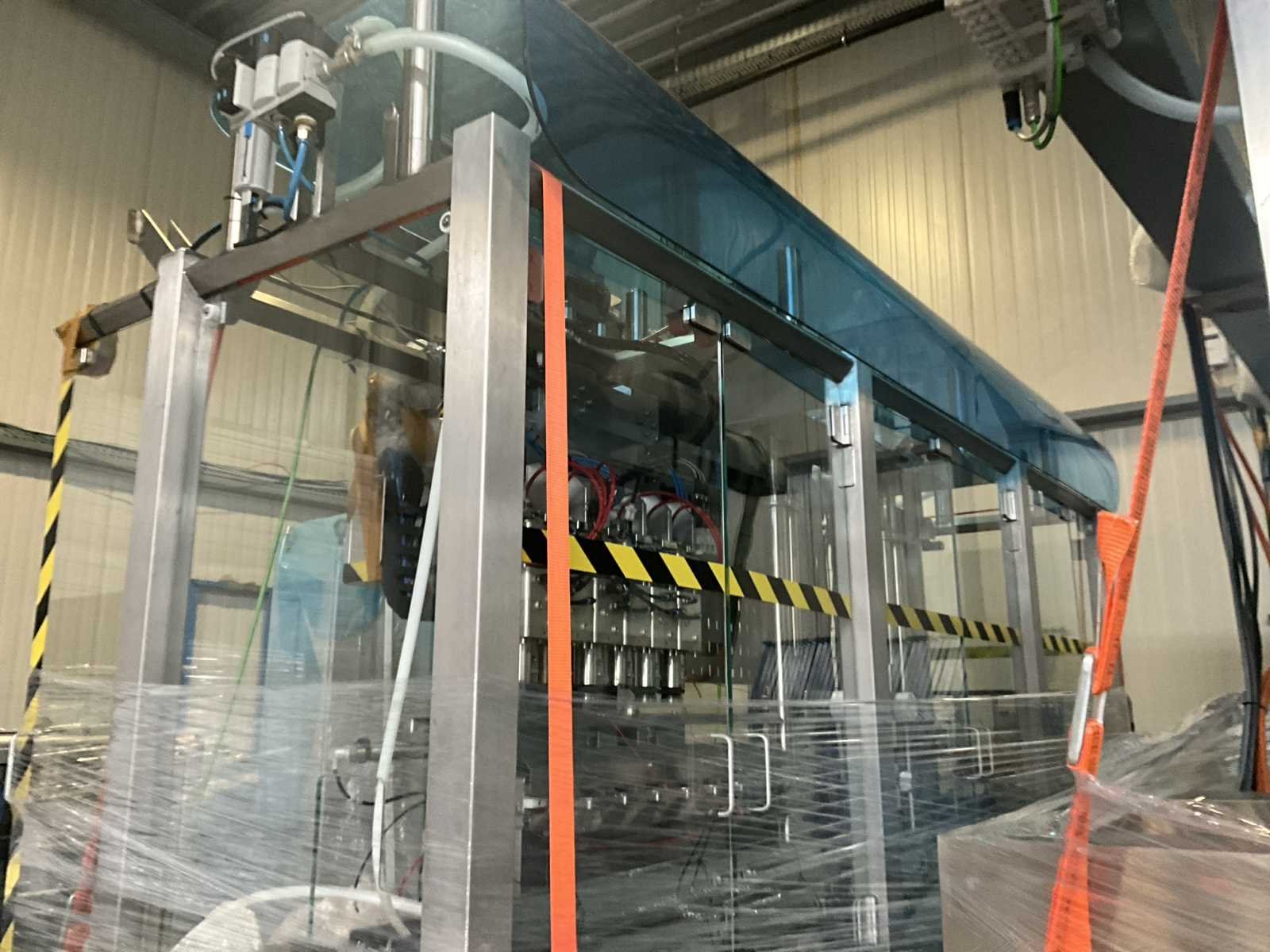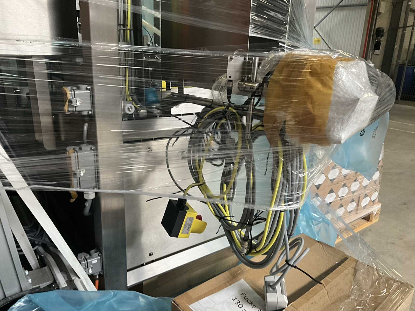 Bestaande uit 2 diverse transportband frames wo van ca. 5 lpm en 3 lpm x. 140 cm en 260 cm hoog wo vv diverse glazen deuren, compleet met feeder bowl BONINO aanzetstuk van ca. 120 x 120 x 160 cm, RvS pompen unit, de-pocker unit, en extra transportband en sturings/schakelkast RITTAL van ca. 110 x 50 x 195 cm hoog. Nee