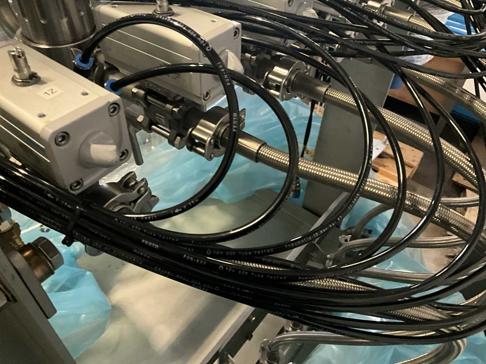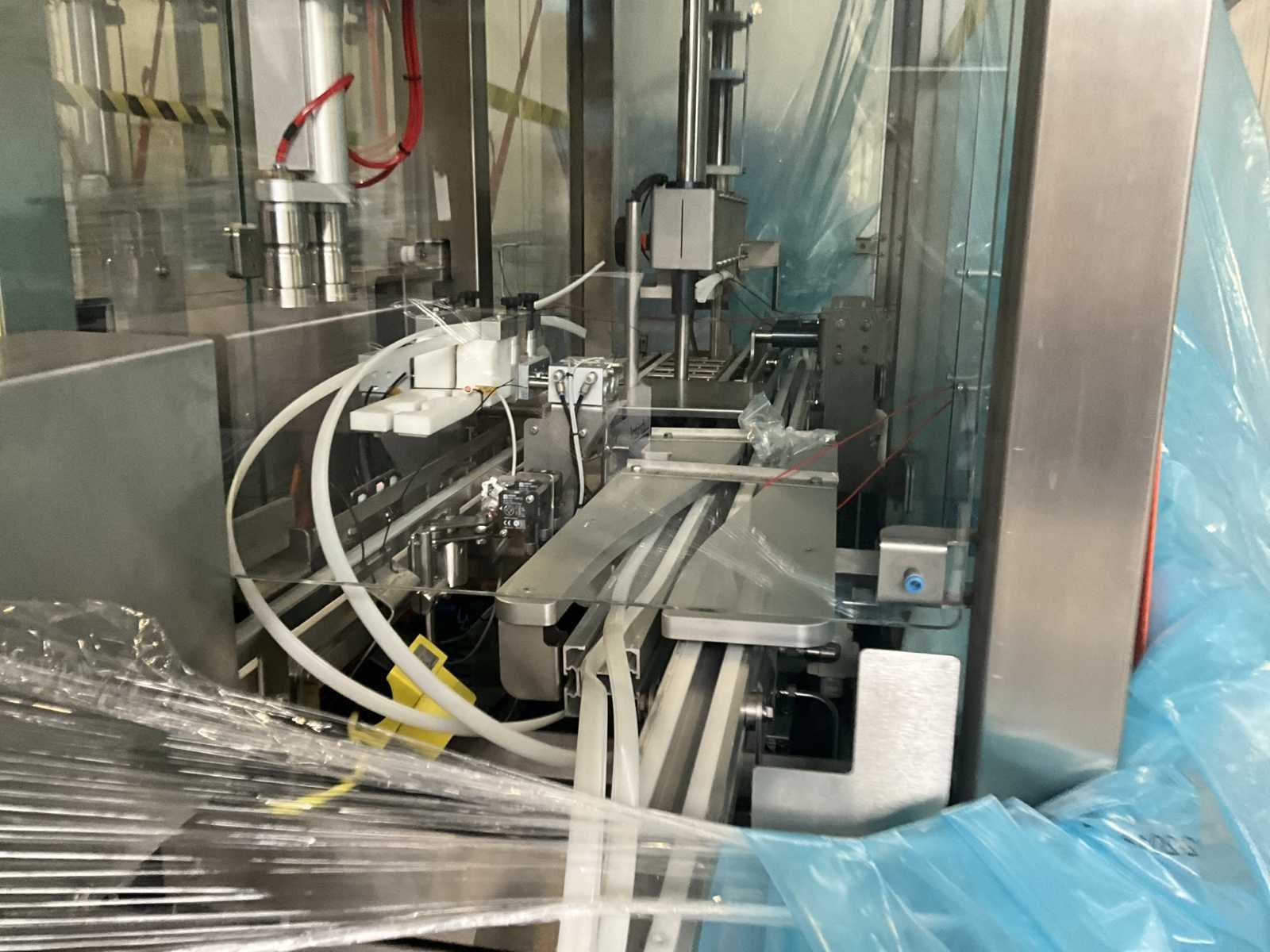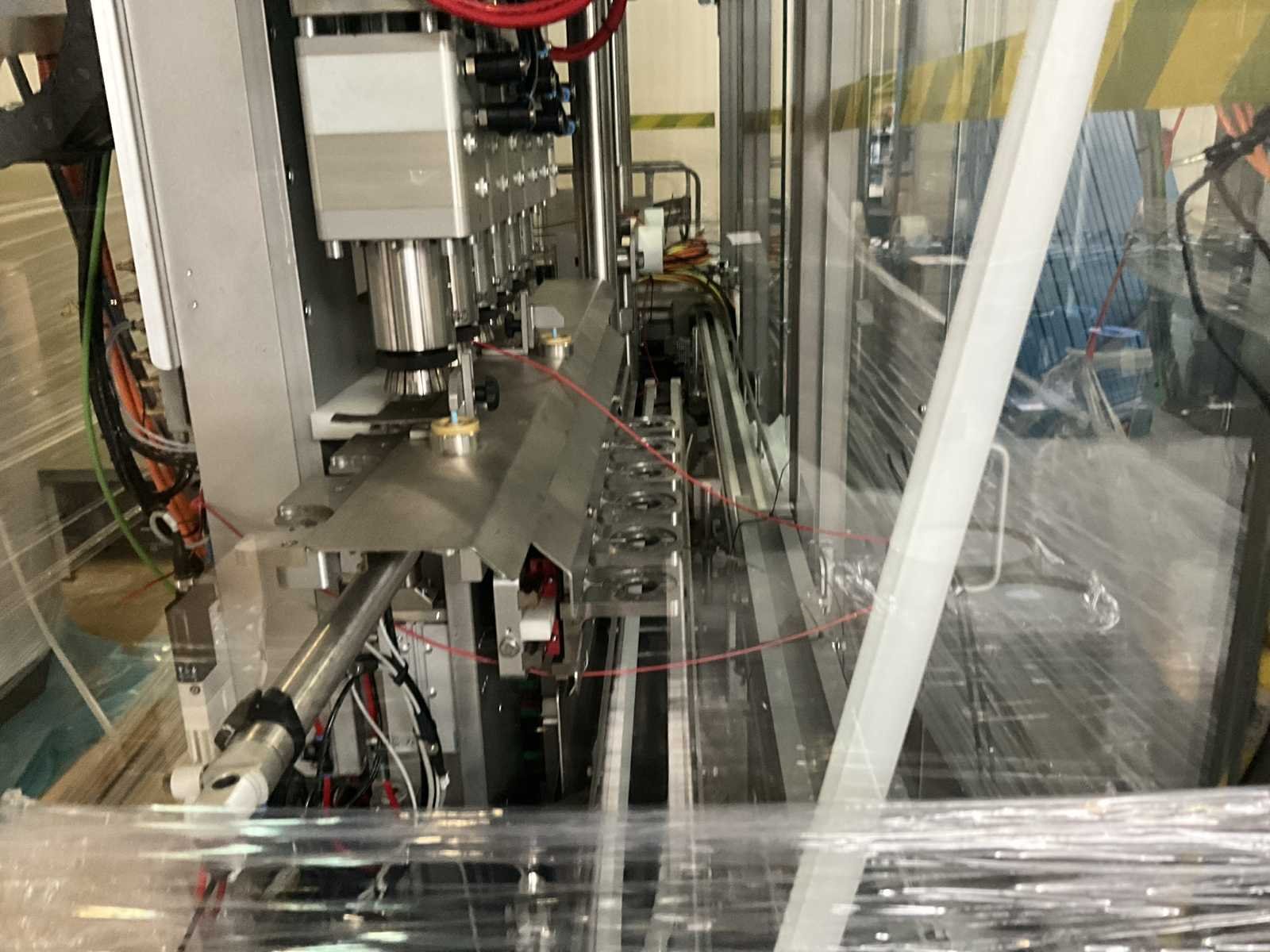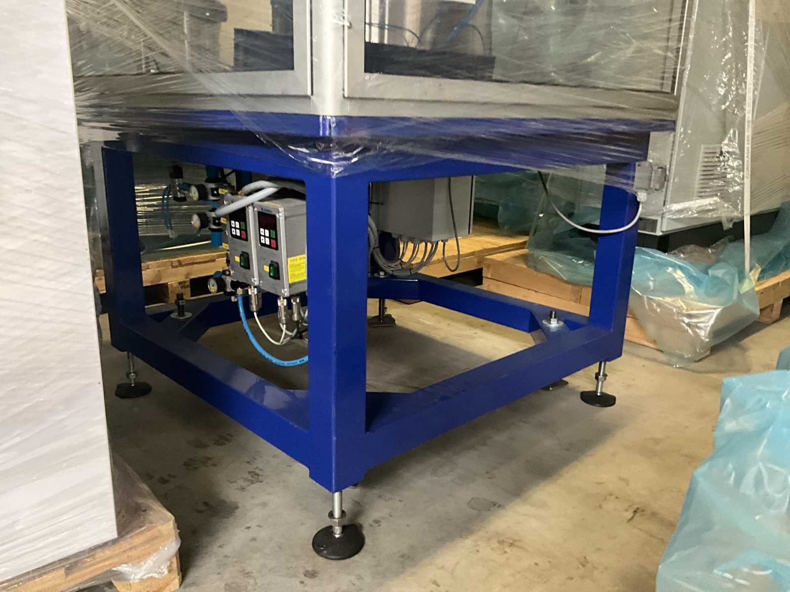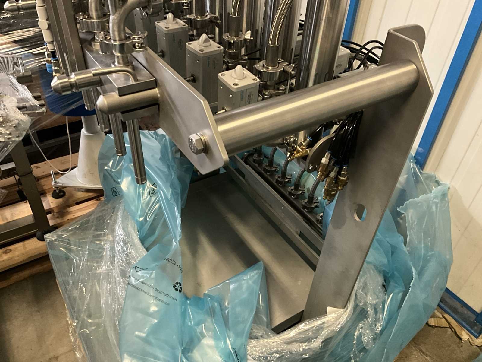 Bestaande uit 2 diverse transportband frames wo van ca. 5 lpm en 3 lpm x. 140 cm en 260 cm hoog wo vv diverse glazen deuren, compleet met feeder bowl BONINO aanzetstuk van ca. 120 x 120 x 160 cm, RvS pompen unit, de-pocker unit, en extra transportband en sturings/schakelkast RITTAL van ca. 110 x 50 x 195 cm hoog. Nee