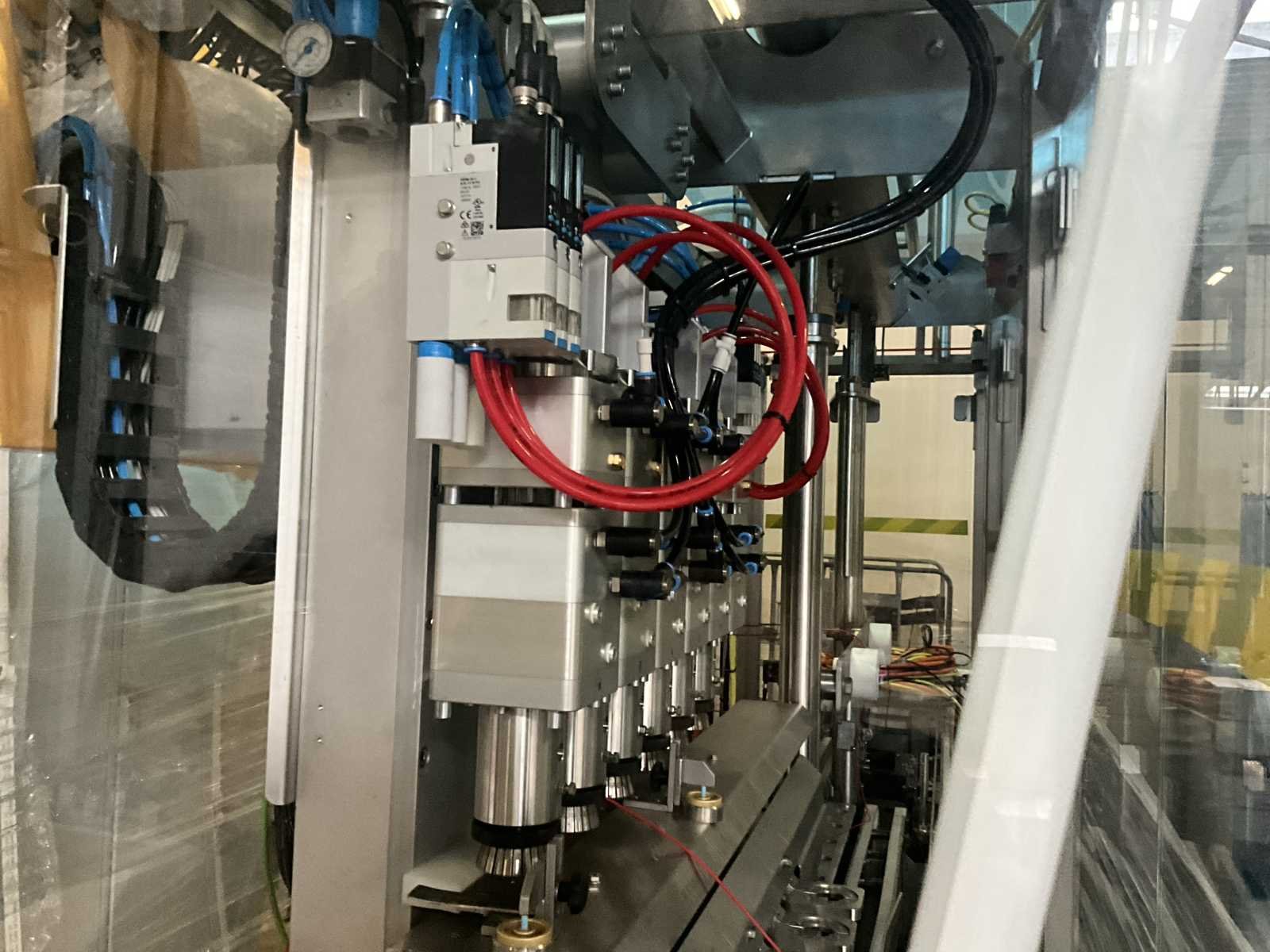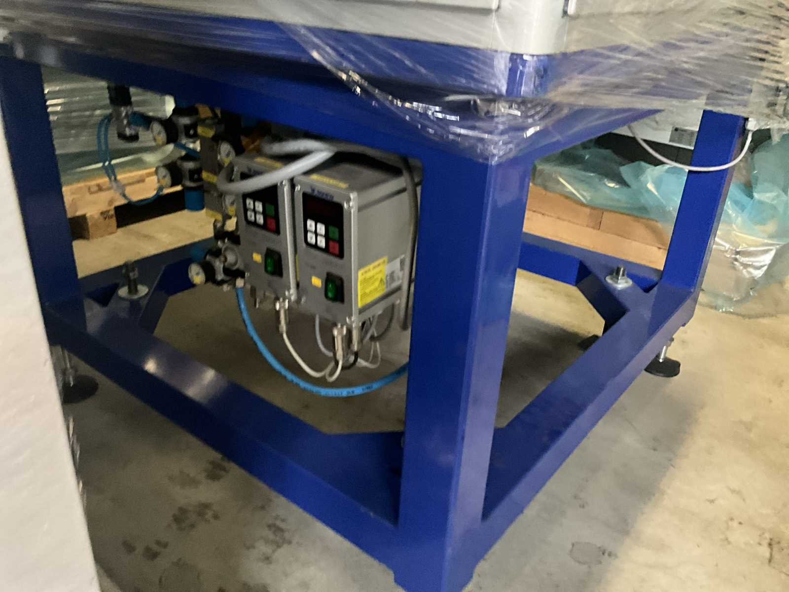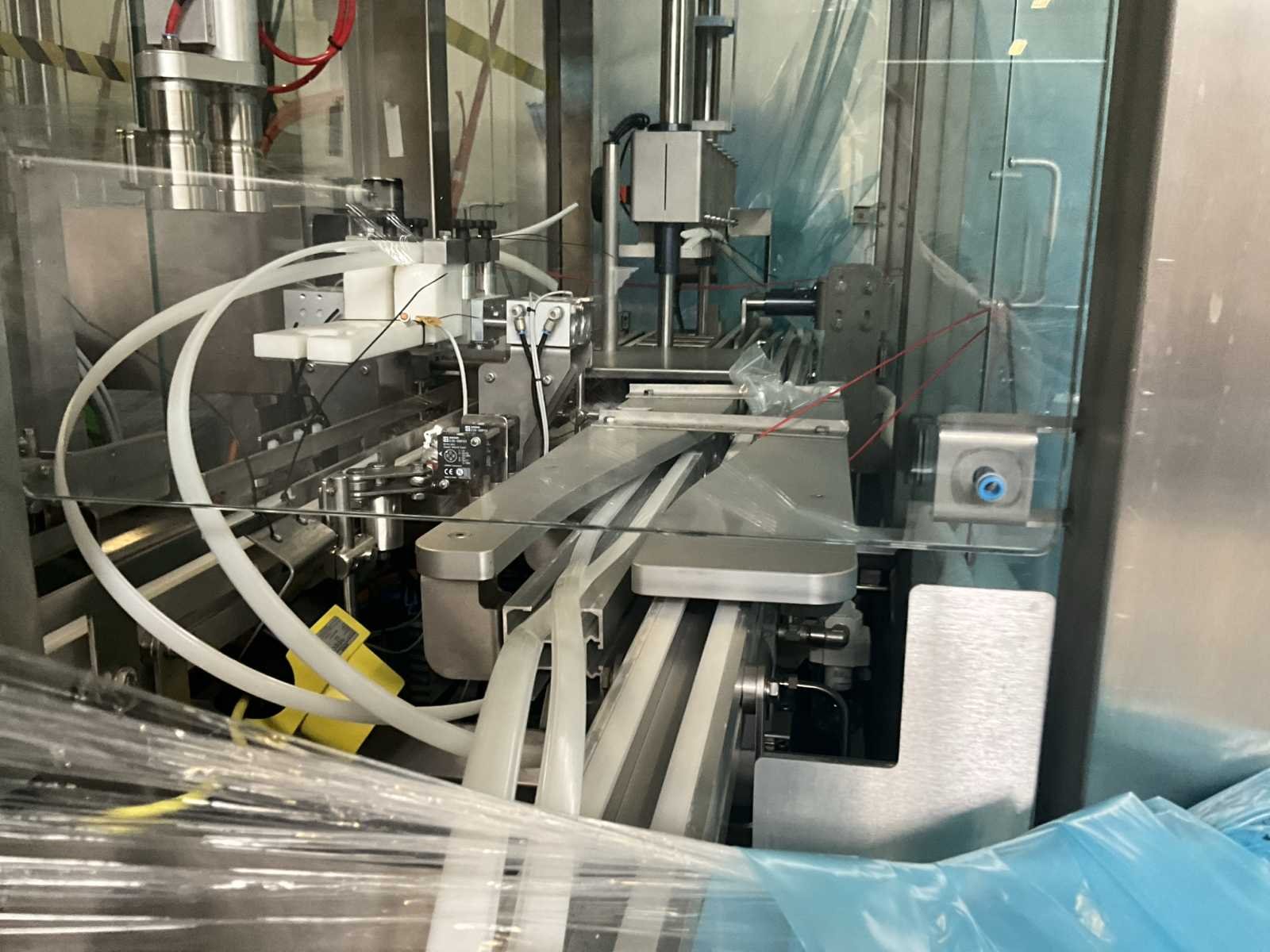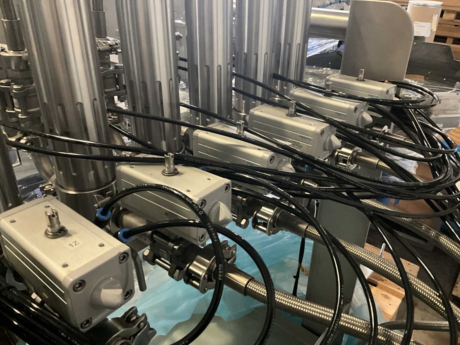 Bestaande uit 2 diverse transportband frames wo van ca. 5 lpm en 3 lpm x. 140 cm en 260 cm hoog wo vv diverse glazen deuren, compleet met feeder bowl BONINO aanzetstuk van ca. 120 x 120 x 160 cm, RvS pompen unit, de-pocker unit, en extra transportband en sturings/schakelkast RITTAL van ca. 110 x 50 x 195 cm hoog. Nee