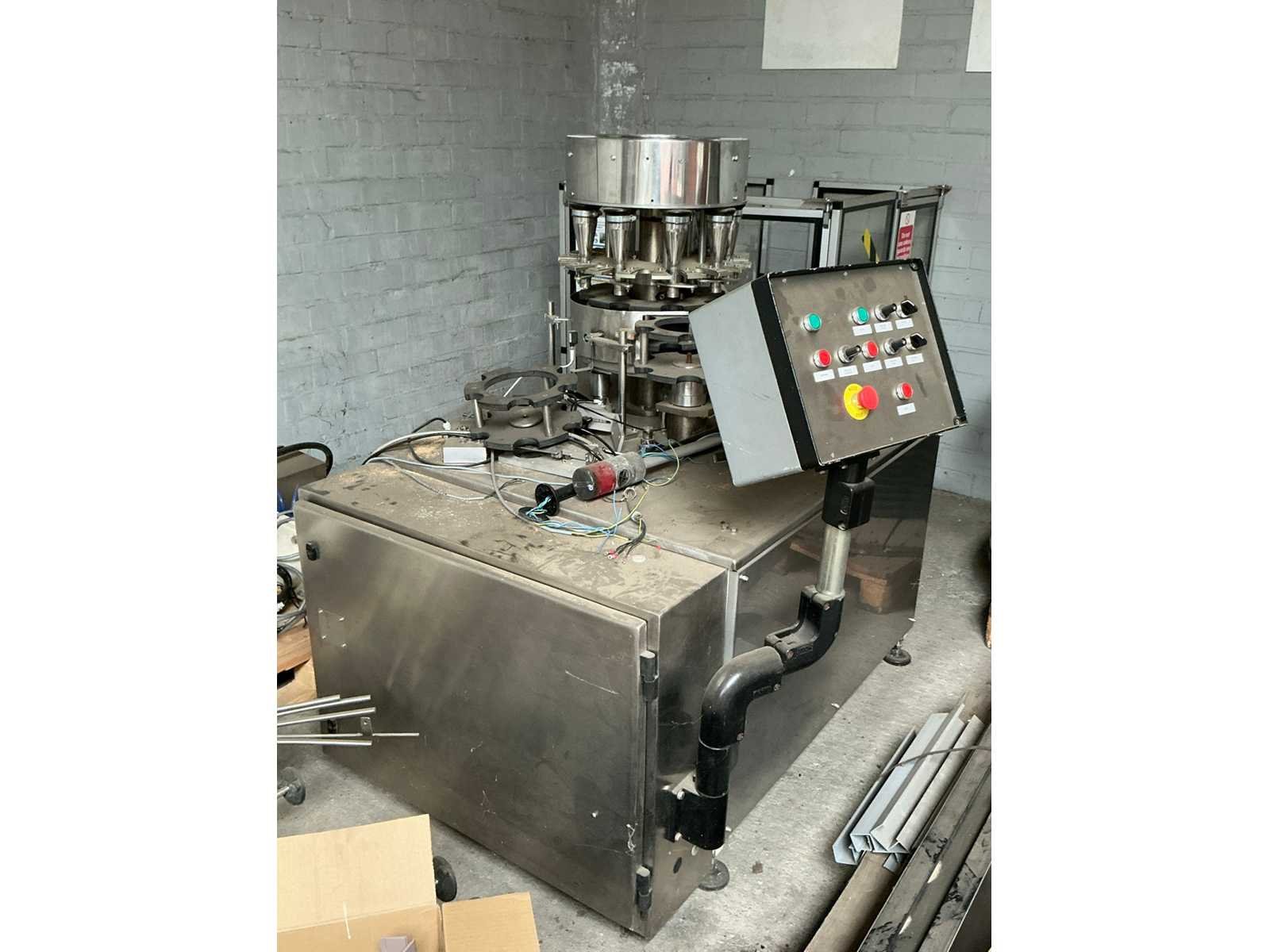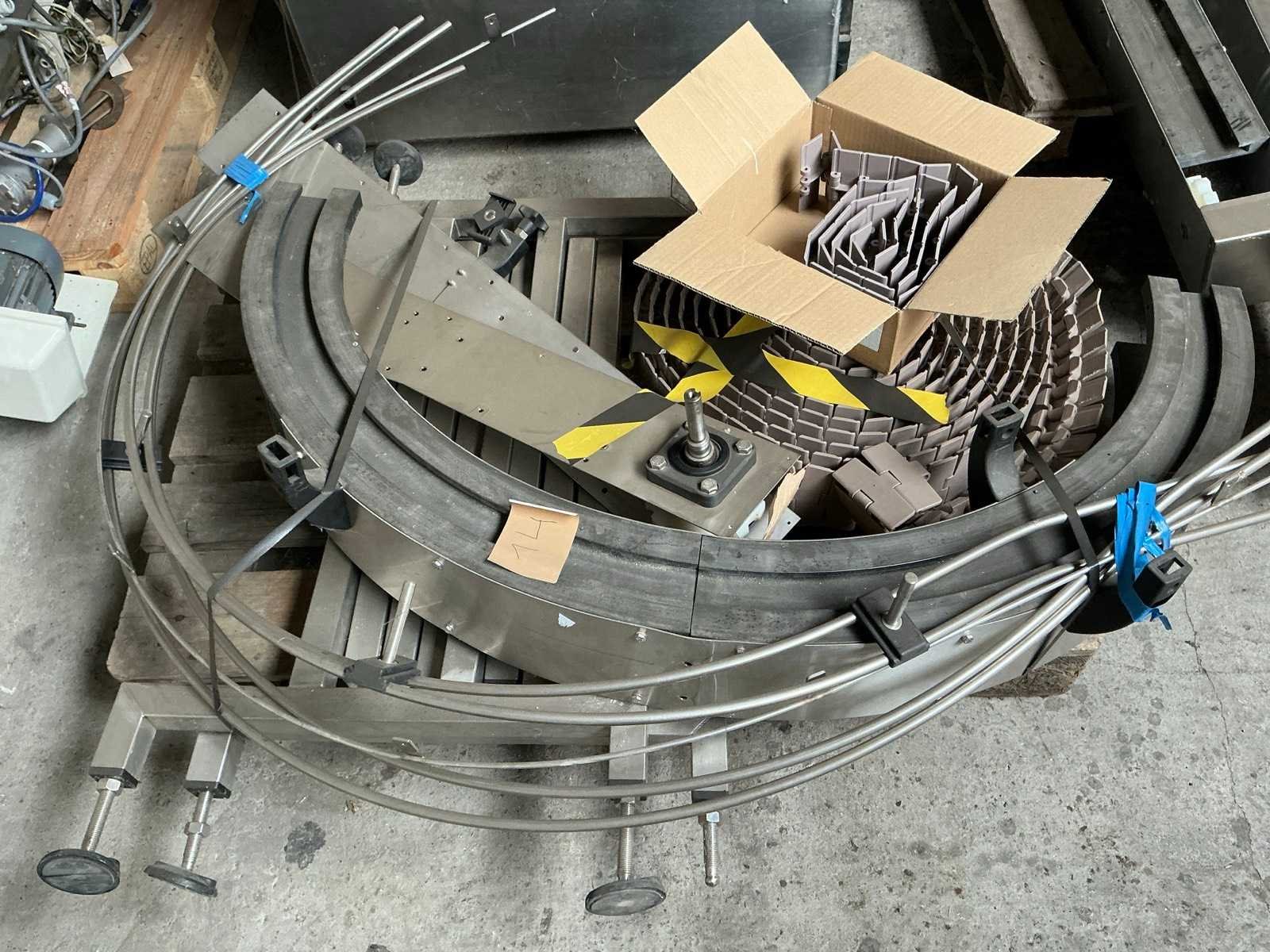 Compleet met alu/kunststof veiligheidsomkasting, schroefdoseerder en U-vormige transportband, Reeds gedemonteerd, Werking ongekend, Liggende op 5 paletten, Afgifte volgens aanwijzing Nee Merk: Van Dijk Industries Type: RVS Aantal koppen: 9 Transportband: true Aansluiting: 400V