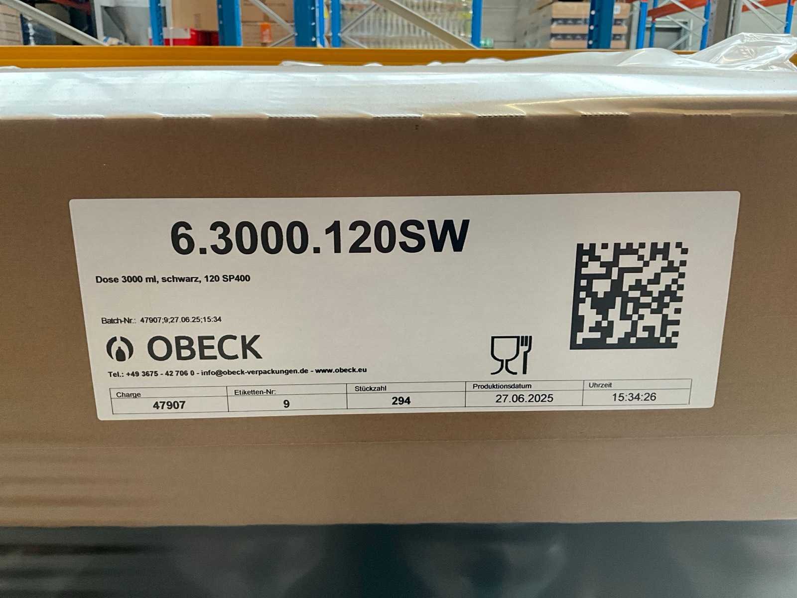 Liggende op 18 pallets Nee Merk: Obeck Model: 120 SP400 Product type: PET zwart 127mm 3000ml