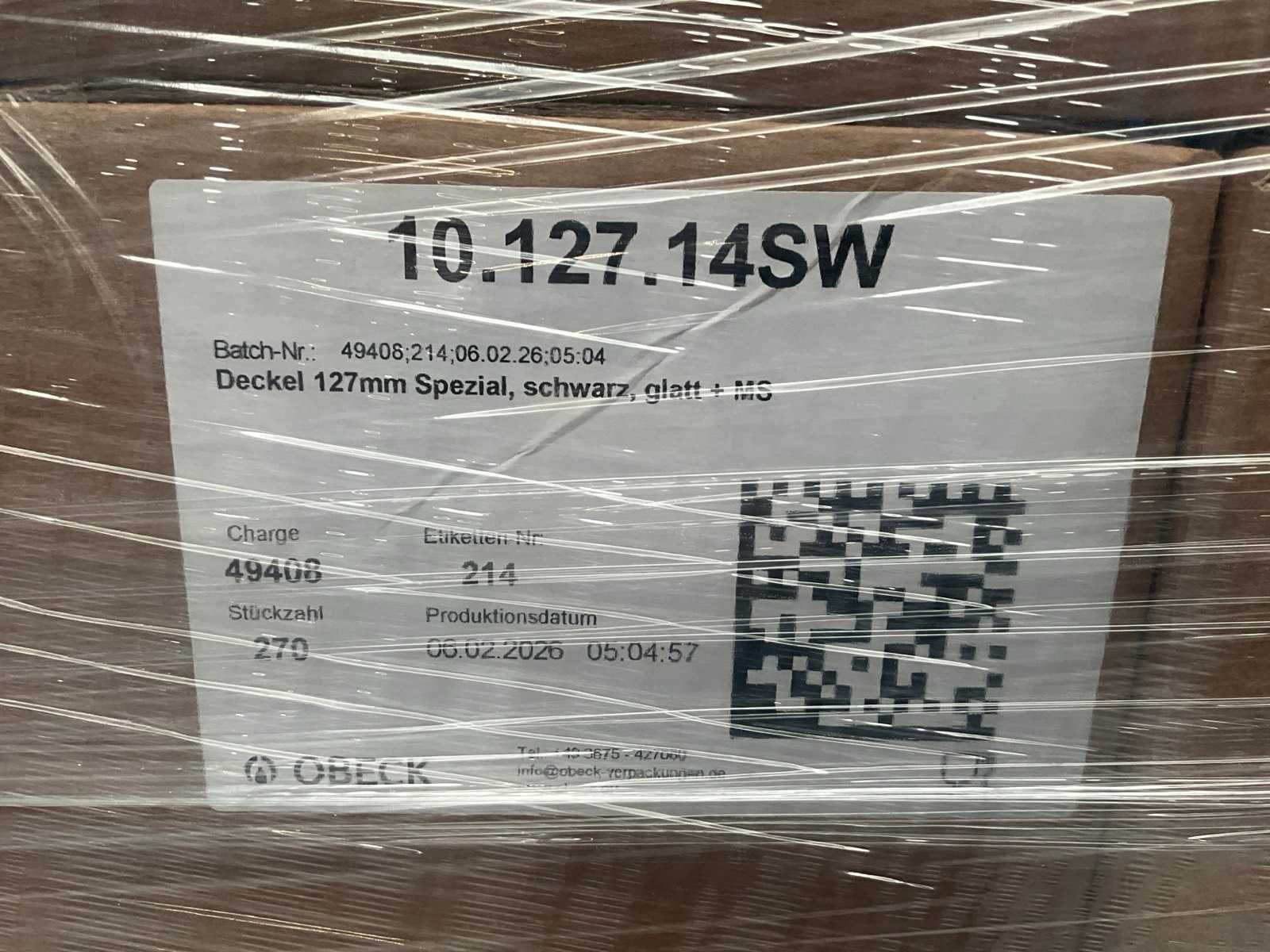 Liggende in 44 omdozen op 3 pallets Nee Merk: Obeck Model: 10.127.14SW Product type: Deckel 127mm Kleur: Zwart