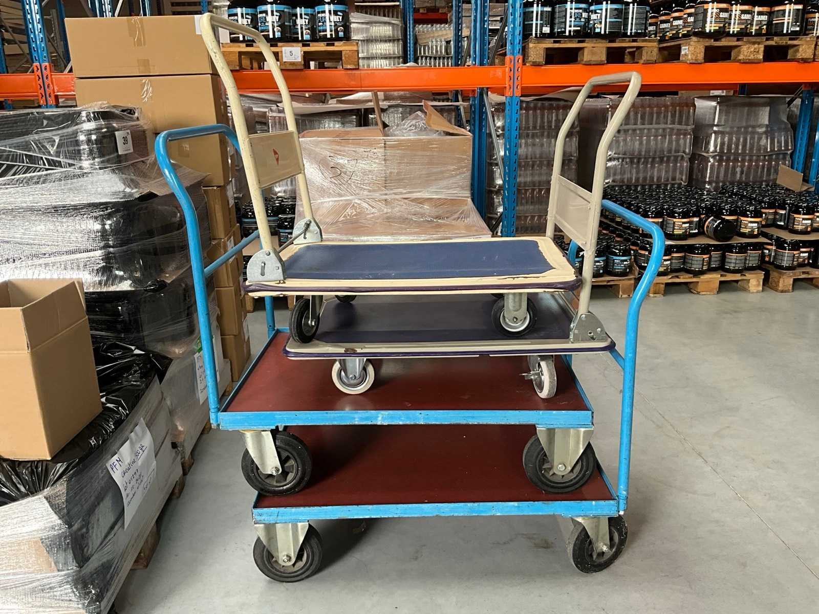 Voorzien van houten laadvlak, compleet met 2x opplooibaar plateauwagentje 90 × 60 cm Nee Lengte: 100 Breedte: 70 Materiaal: Metaal