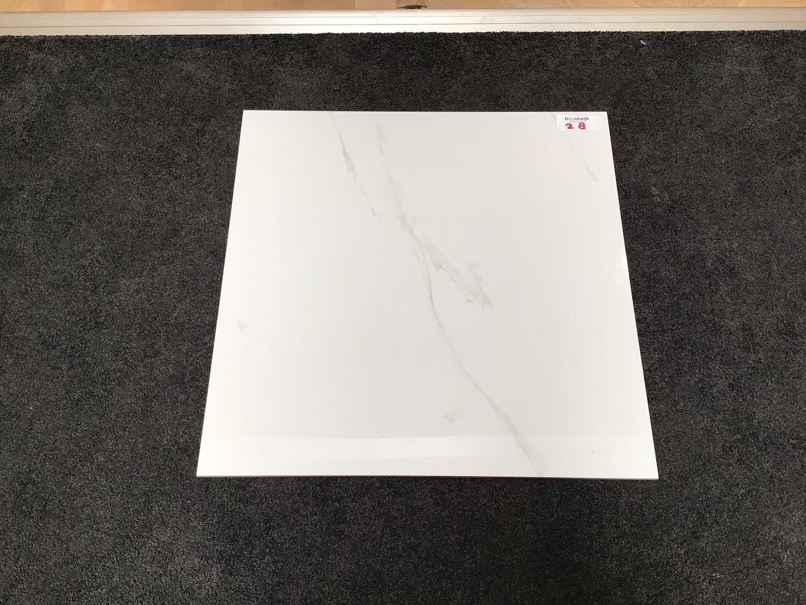 Nee Merk: Qua Granite Kleur: Blanco Afwerking: Gepolijst Lengte: 600mm Breedte: 600mm Dikte: 8mm Materiaal: Keramiek Type: Vloertegel Model: Opium Aantal m² per verpakking: 1.44m² Aantal pakken: 64 Totaal oppervlakte: 92.16m² Totaal gewicht: 1800kg