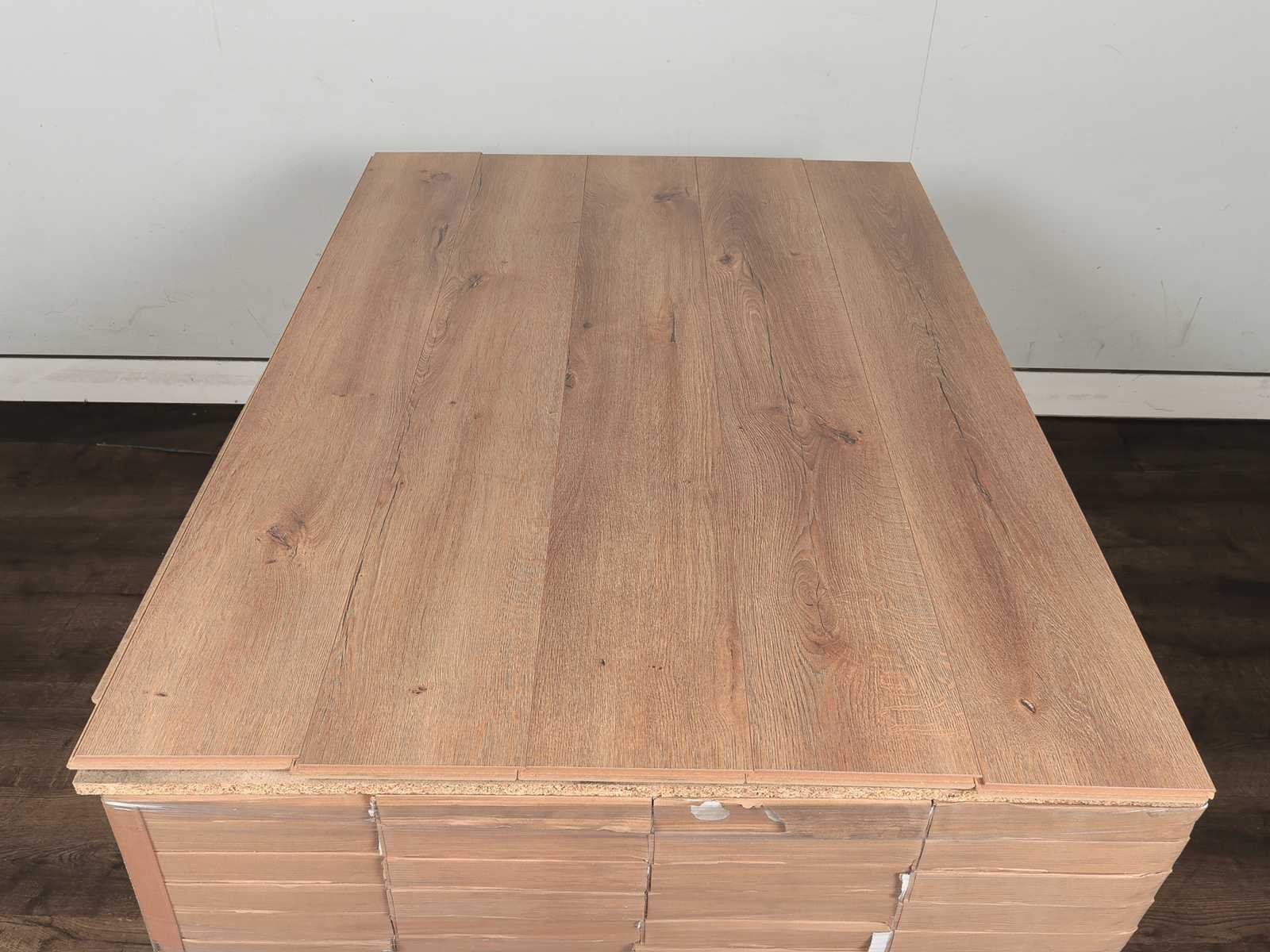Kwaliteits laminaat vloer, dikte 10 mm, voorzien van clicksysteem, goed te combineren met vloerverwarming, kras en slijtvast, anti slip, gemakkelijk schoon te maken, warm en comfortabel, 45 pakken a 1,87 m2 No Merk: Krono flooring Product type: Laminaat Oppervlakte: 84m² Geschikt voor vloerverwarming: Ja V-groef: Ja Afwerking: Voelbaar structuur, anti slip, met v-groef Aantal m² per verpakking: 1.87m² Kleur: Oak Wilderness Gewicht: 675kg Lengte: 1383mm Breedte: 193mm Materiaal: HDF/MDF