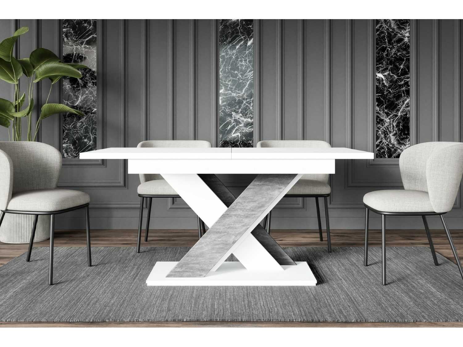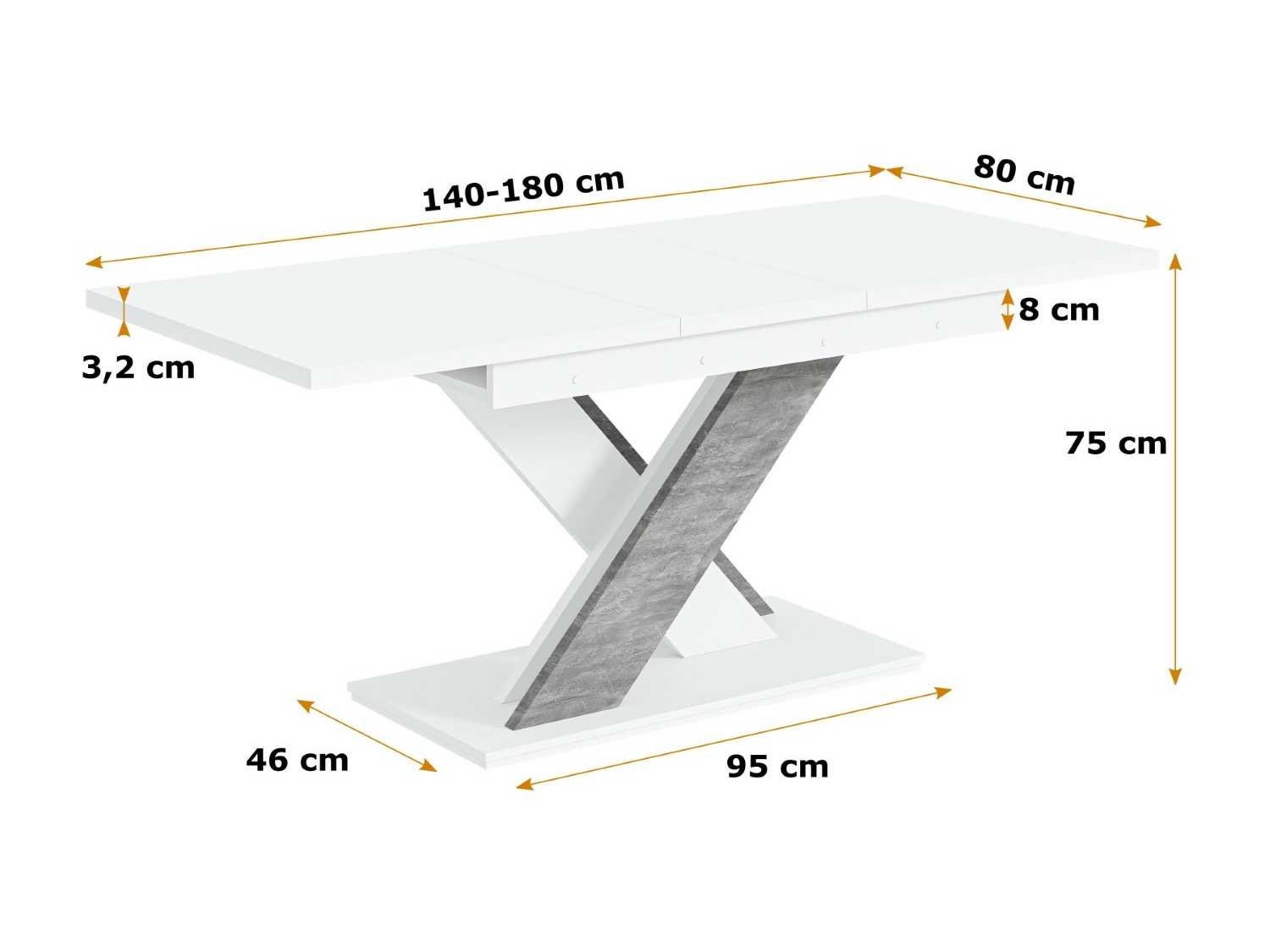 Slaapkamer eetkamer Moderne stijl Frame Type X-frame Kleur Wit/beton look Tafelbladkleur wit Framekleur Wit - betonlook Breedte 180 cm diepte 80 cm Hoogte 75 cm Rechthoekige vorm Verlengingstype: Inzetplaat Framemateriaal Houtgebaseerd materiaal Aantal etappes 1 Dikte van het tafelblad 3,2 cm Breedte van het tafelblad 140 cm Framemateriaal Houtgebaseerd materiaal Uitbreidingselementen 1 Verlengingstype: Inzetplaat Mat oppervlak uiterlijk Uitgevouwen tafel 180 cm Non