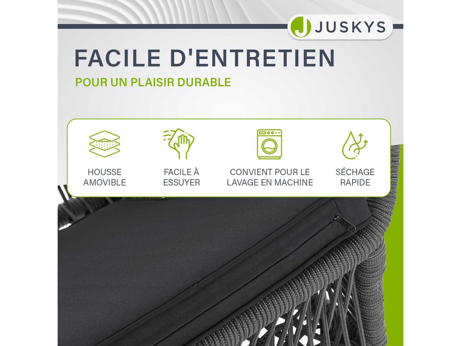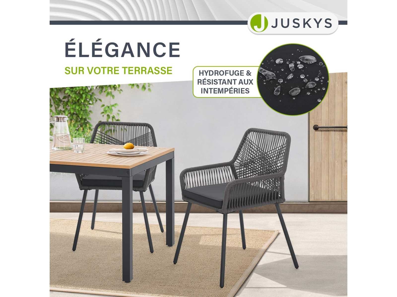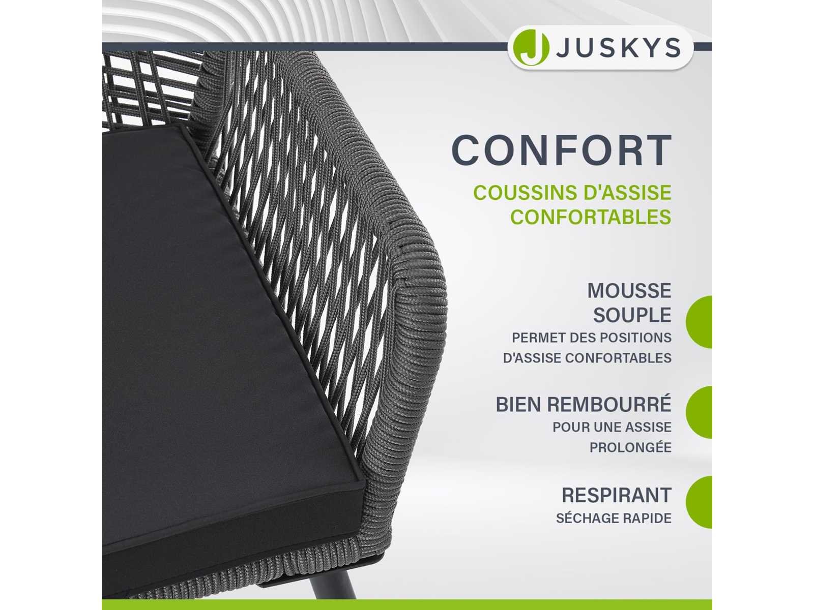 Modern ontwerp: stoelen voor de tuin, terras, balkon of veranda; perfect passen in stijlvolle woonruimtes; voor binnen- en buitengebruik ? Hoog comfort: De elastische vlechten van de touwen zien er niet alleen mooi uit, maar zorgen ook voor veel comfort dankzij de armleuningen en dikke vulling ? Hoge laadcapaciteit: robuuste balkonstoelen van plastic en gelakt staal; minimaal corrosief, gemakkelijk te onderhouden en stabiel; Elke stoel draagt tot 150 kg ? Comfortabel tuinmeubilair: elke stoel heeft armleuningen en een zachte rugleuning; Ideaal voor ontspannende momenten met je dierbaren ? Eenvoudige montage: het balkonmeubilair wordt geleverd als een set met gedetailleerde instructies; Geen gereedschappen of voorkennis nodig Non