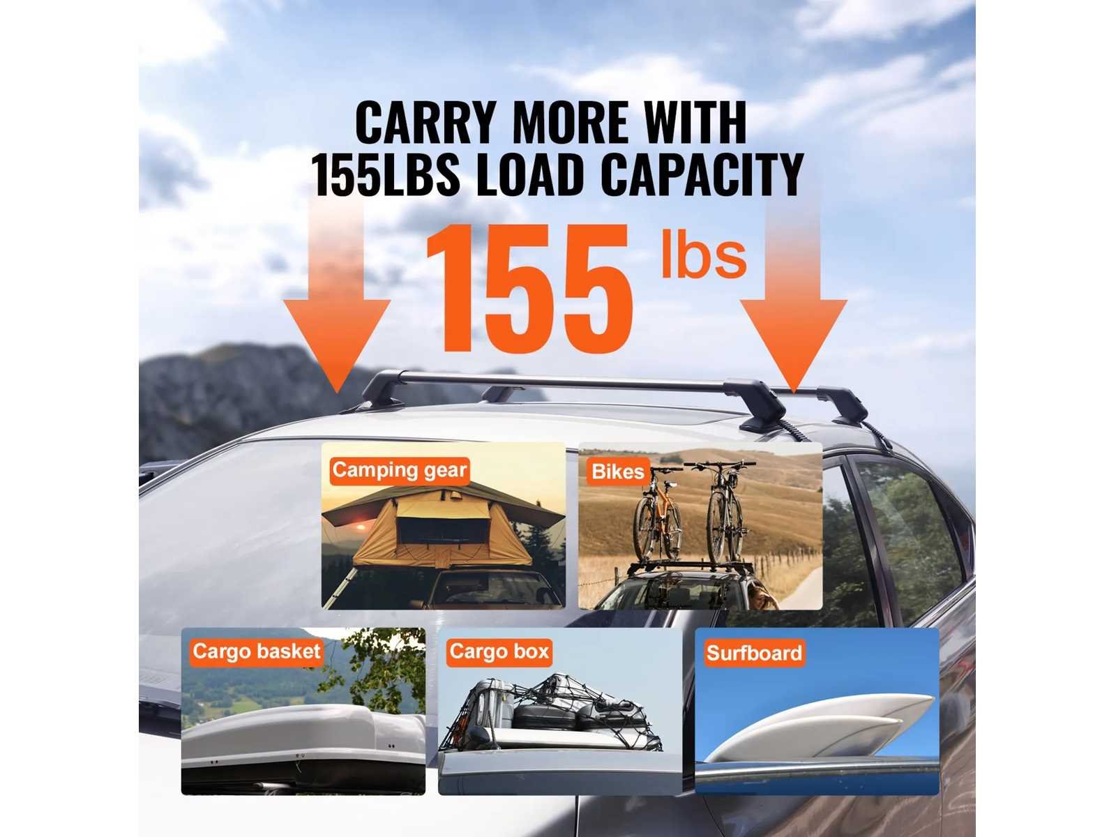 Dakdrager: Onze dakdragers zijn ontworpen om een kale dak met een maximale breedte van 1050 mm te passen. Zeg gedag tegen ingewikkelde opstellingen! Er is geen boren nodig – het plaatwerk kan perfect worden aangepast om op het dak van uw voertuig te passen. Met de volledige accessoires is het systeem binnen slechts 10 minuten klaar voor gebruik! Opmerking: Alleen voor 4- of 5-deurs voertuigen, niet aanbevolen voor 2-deurs modellen. 70,3 kg laadvermogen: Het verhoogt de laadcapaciteit van uw voertuig met een laadcapaciteit van 70,3 kg. Nu kun je moeiteloos grote spullen meenemen zoals rekken, surfplanken, kampeeruitrusting, mountainbikes en ski's, waardoor je reizen soepeler en aangenamer worden. Lichtgewicht & Duurzaam: Gemaakt van premium 6063-T6 aluminium, zijn onze rack bars niet alleen roestvrij en corrosiebestendig, maar ook licht, waardoor ze je auto niet rommelig maken. Versterkt voor langdurig gebruik blijven ze duurzaam en kromtrekken ze niet. Beveiligingsvergrendeling: Onze dakrekken zijn uitgerust met een diefstalbeveiligingssysteem en twee sleutels. Eenmaal vergrendeld blijft het stabiel en veilig, wat 100% bescherming biedt tegen diefstal. De montagevoeten, gemaakt van PP, zijn extreem duurzaam en roesten niet. Geluidsvrij en trillingsvrij: De aluminium aerodynamische buis minimaliseert de luchtweerstand en het geluid, terwijl de rubberen pads op de montagevoeten uw voertuig beschermen tegen krassen en zorgen voor een rustige, ongestoorde reis voor u of uw kinderen. Non