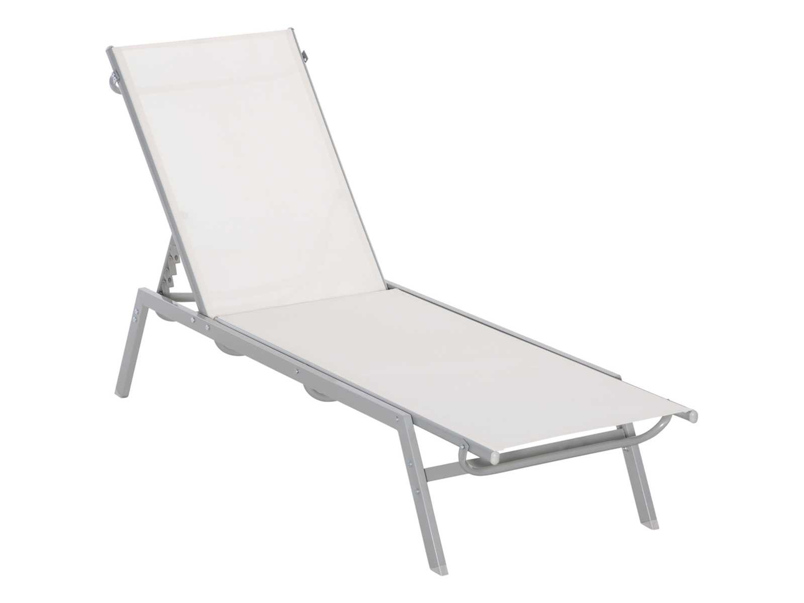 Specificaties: - Kleur: Roomwit.? Materiaal: Metaal, Canvas.? Afmetingen: L170 x W58 x H97 cm.? Afmetingen met platte rugleuning: L 200 x B 58 x H 62 cm.? Rugsteunhoogte afhankelijk van de instelling: 97, 90, 82, 72, 62 cm? Maximale laadcapaciteit: 160 kg. - 1 x Tuinuitsmijter - 1 x Assemblagehandleiding Non