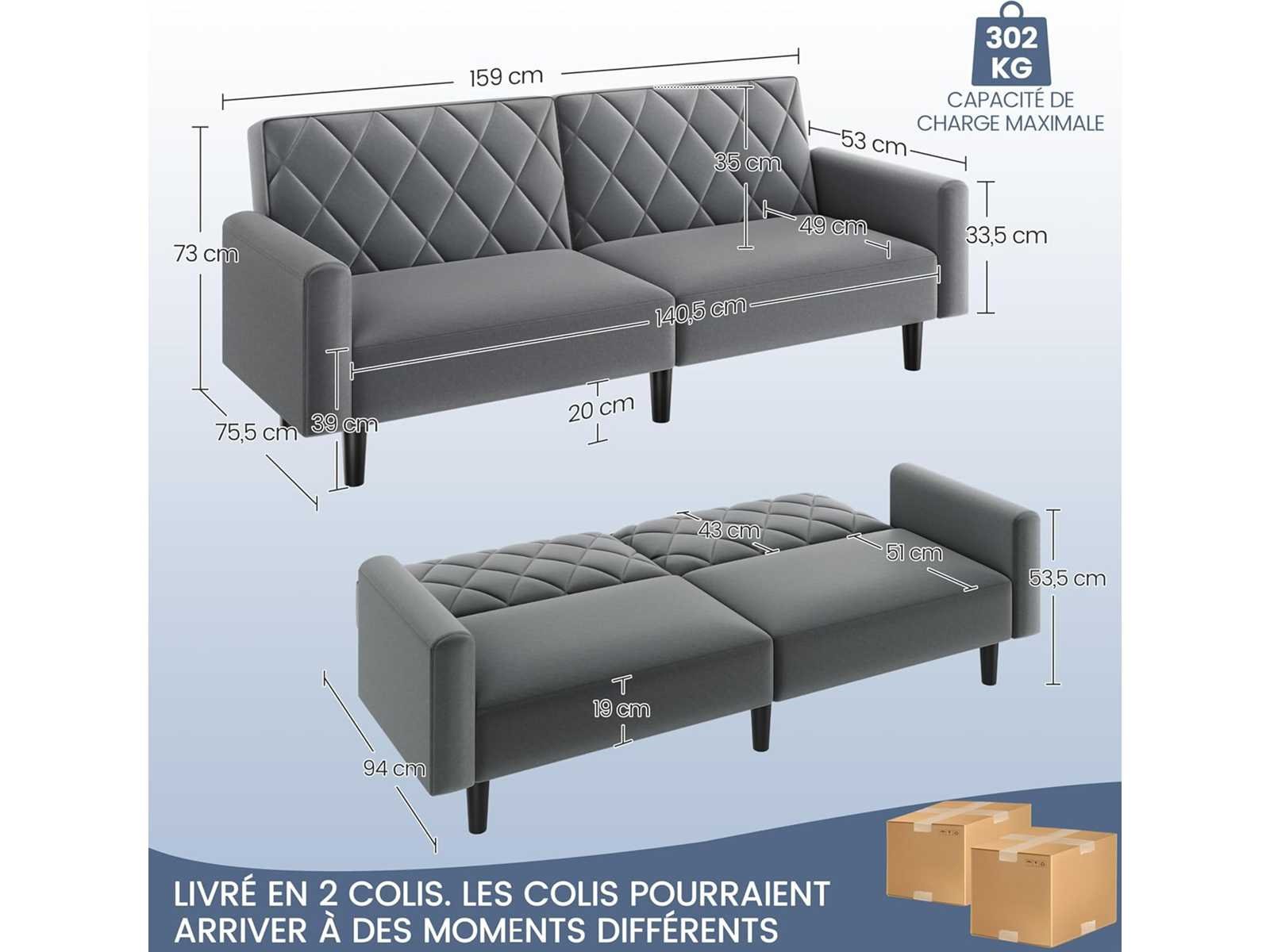 Montage vereist: Ja Zitdiepte 49 centimeter Gewichtslimiet 302 kilogram Productafmetingen: 75,5D x 159B x 73H centimeter Itemgewicht 29,35 kilogram Type Cabriolet Kleur Grijs Meubelstof Type: Fluweel No Breedte: 159cm Hoogte: 73cm