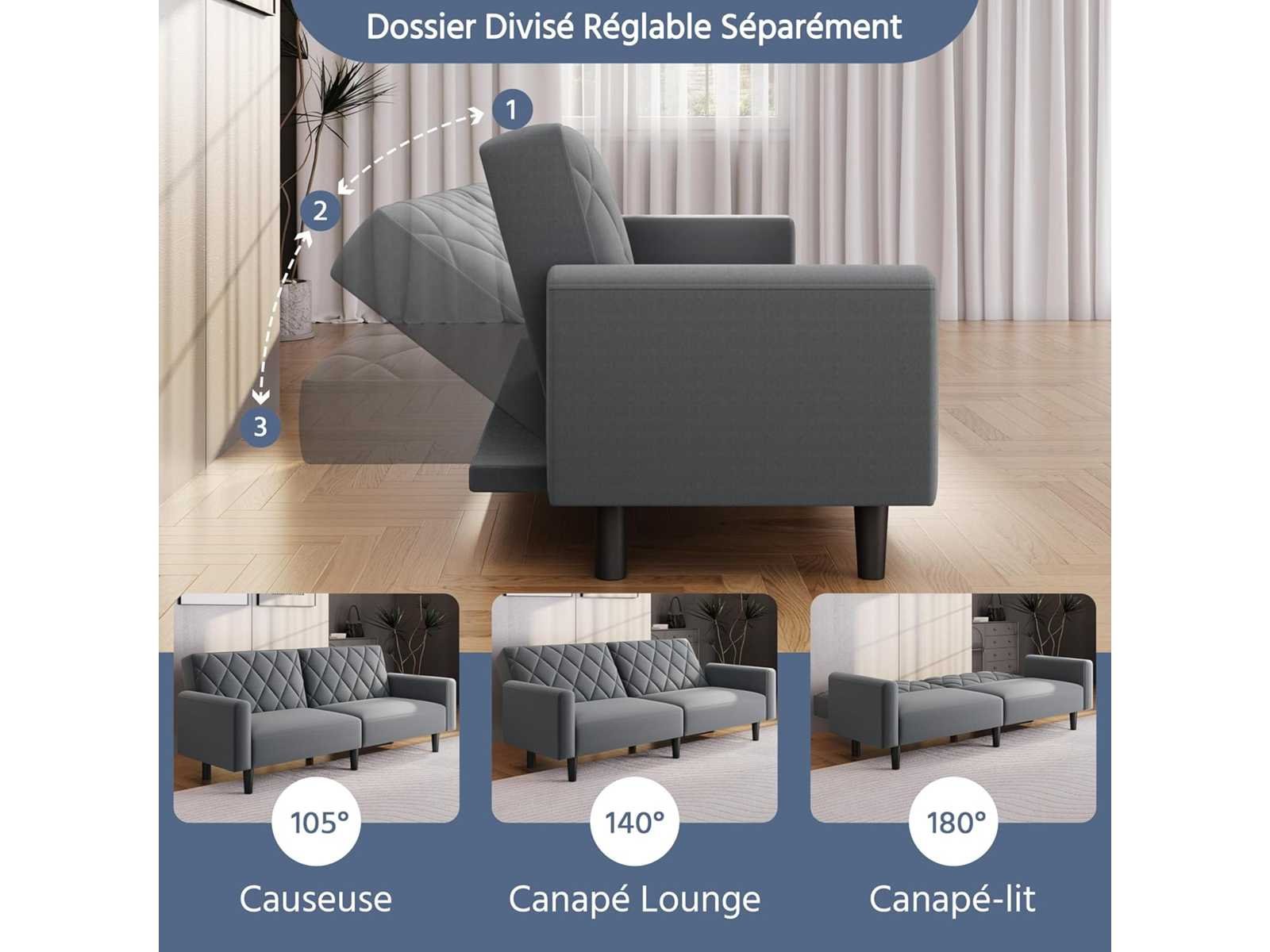 2-zits cabrioletbank met verstelbare rugleuning - donkergrijs