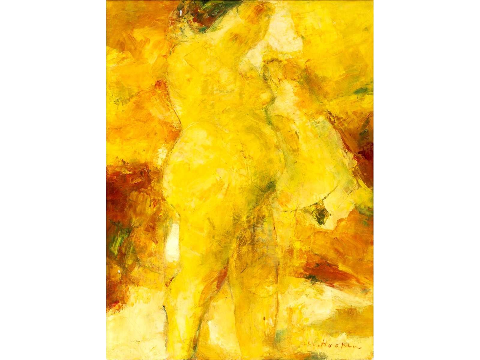 Origineel van doek Paul Hugo ten Hoopen - galerieprijs: 3.500 € - Paul Hugo ten Hoopen was een Nederlands schilder opgeleid aan de Rijksakademie van Beeldende Kunsten in Amsterdam en aan de Schule des Sehens van Oskar Kokoschka in Salzburg. Zijn oeuvre omvat kleurrijke landschappen, interieurs, stillevens en lyrische naakten, herkenbaar aan hun vrije toets en warme, expressieve kleurgebruik. Zijn werk werd onder meer getoond in Museum Valkenburg en is vertegenwoordigd in de collectie van Museum van Bommel van Dam en diverse openbare verzamelingen. Van 1969 tot 1992 was hij hoogleraar aan de Rijksakademie. No Kunstenaar: Paul Hugo ten Hoopen (1927) Titel van werk: Danaë Datering: 1966 Techniek: olie op doek Handtekening/oplage: true Oplage: Origineel Gesigneerd: Gesigneerd Hoogte: 80cm Breedte: 60cm Hoogte incl. lijst: 82,5cm Breedte incl. lijst: 63,5cm Frame: true