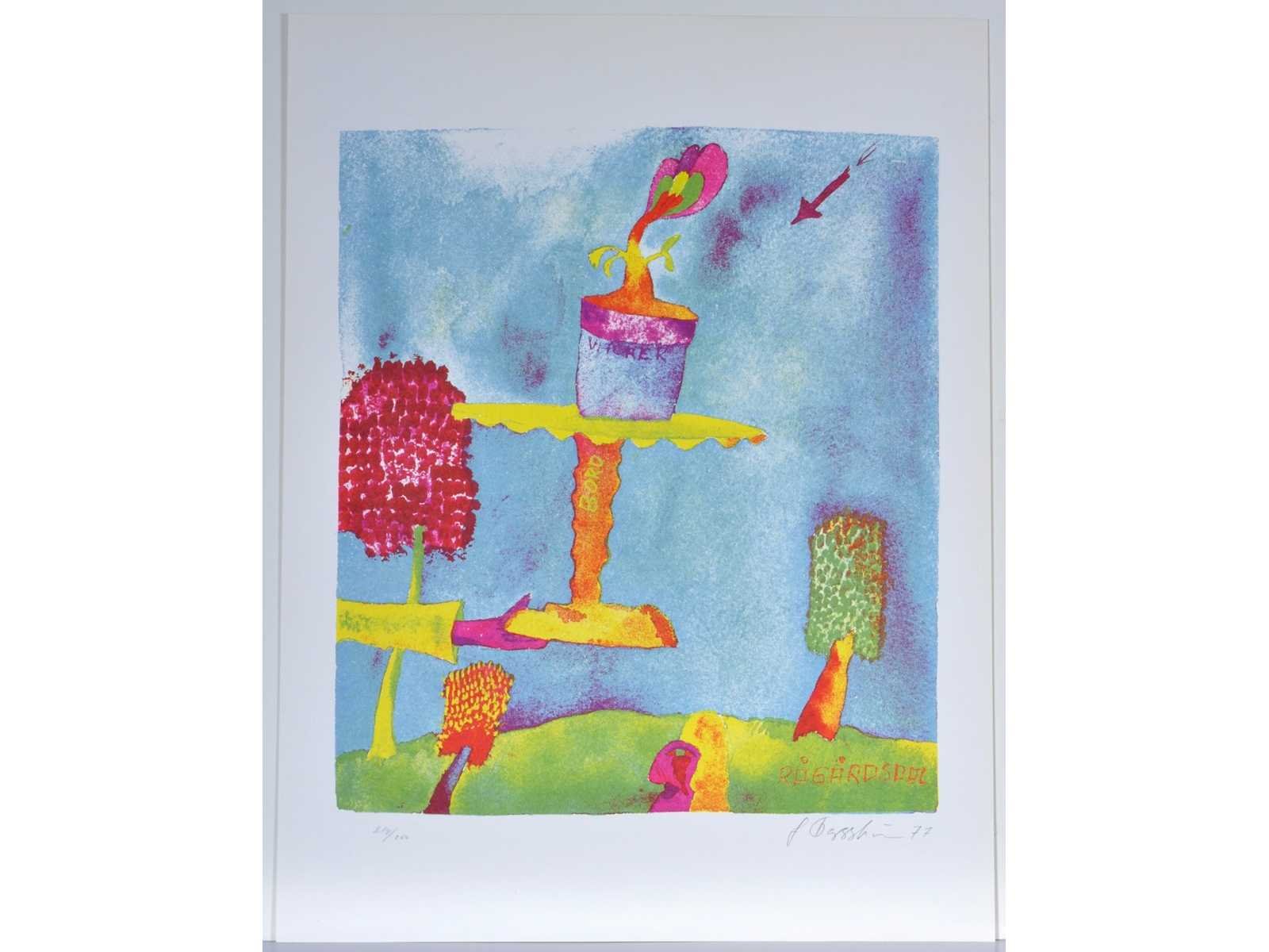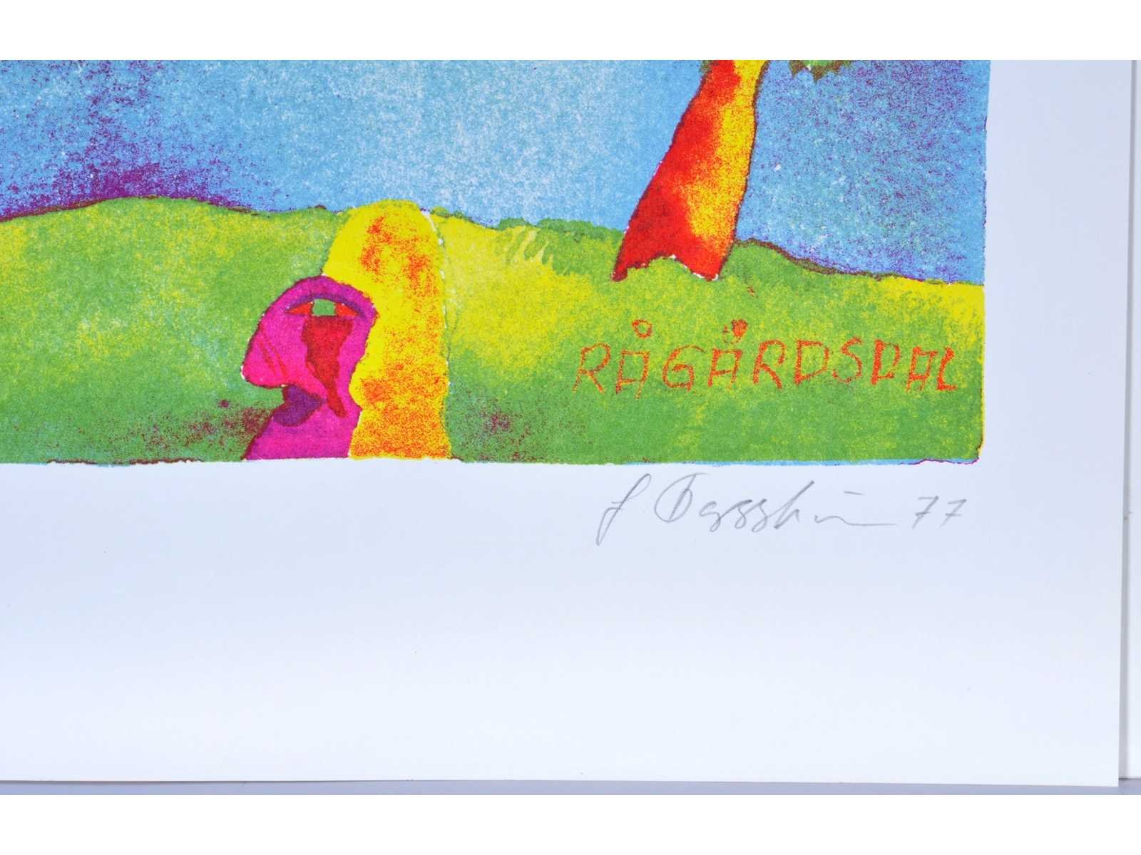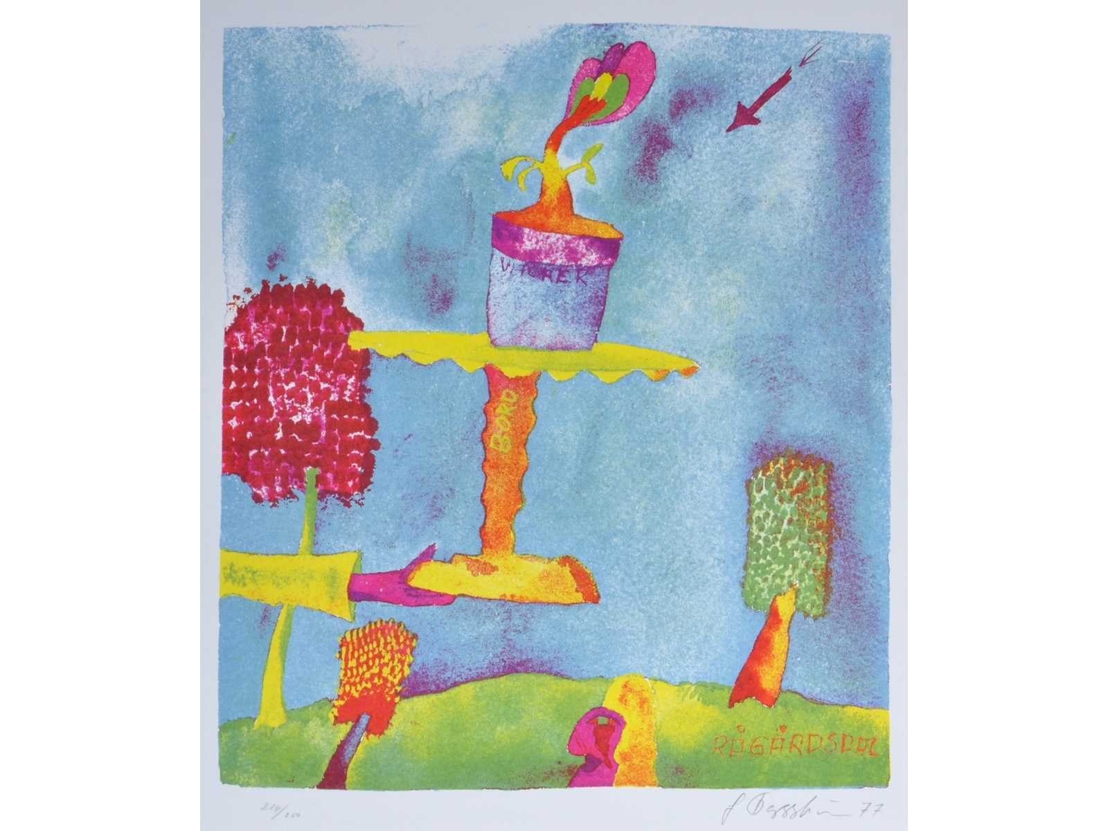 Drukatelier: Beca-Screen, Ekeren - Uitgever: Peter Bekaert, 1977 - het oplagenummer kan afwijken van het nummer op de foto Nee Kunstenaar: Jonny Forsström (Zweden, 1944-2017) Titel van werk: Rågårdsdal Periode: 1977 Datering: 1977 Techniek: Zeefdruk Handtekening/oplage: true Oplage: 250 Gesigneerd: Gesigneerd en genummerd Hoogte: 55cm Breedte: 42cm