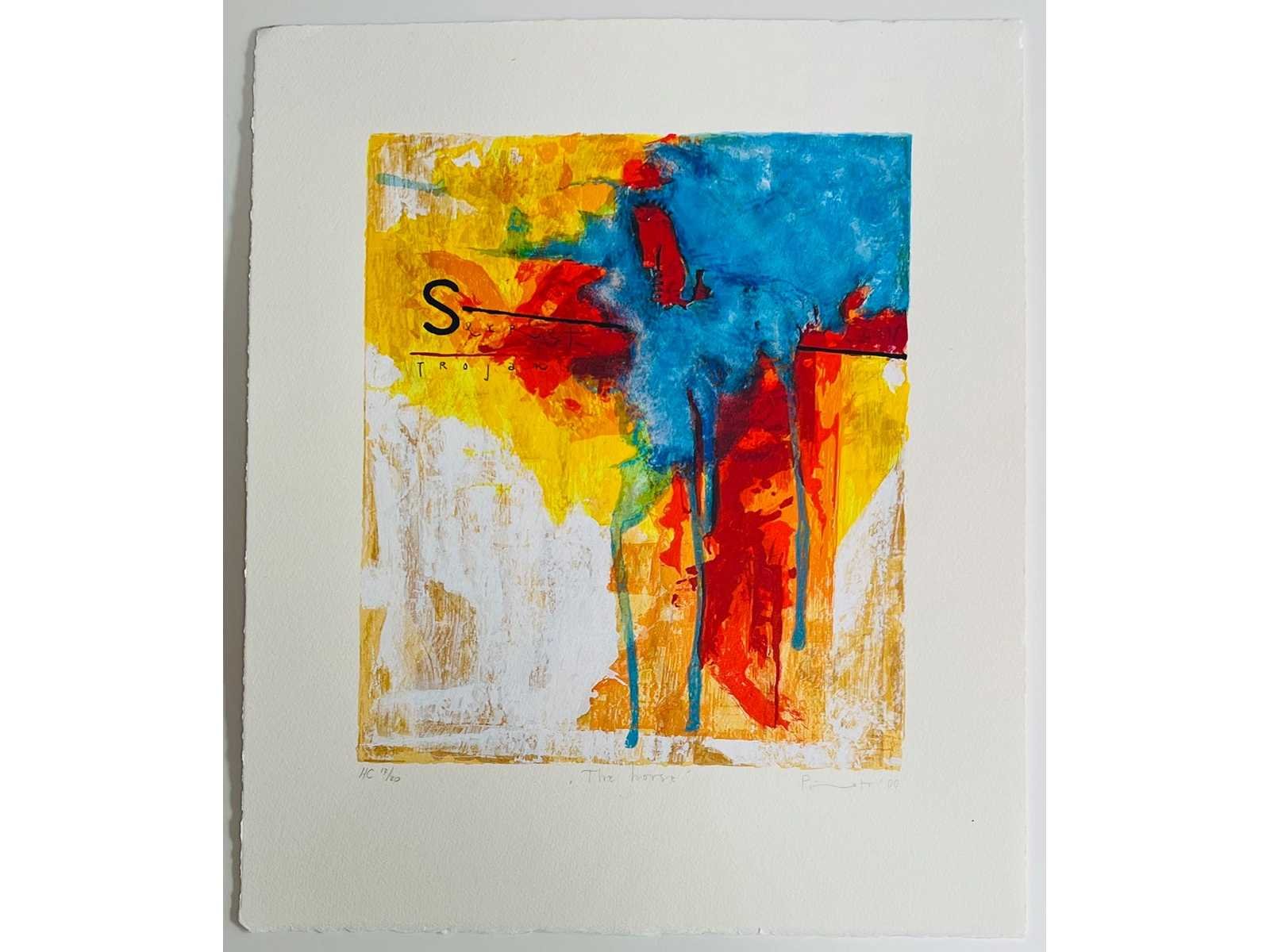Kleurenzeefdruk uit 2000 op geschept papier - het oplagenummer (oplage 180) kan afwijken van het nummer op de foto Nee Kunstenaar: Piotr Konkl (Polen 1963) Titel van werk: Trojan horse Periode: 2000 Techniek: kleurenzeefdruk Handtekening/oplage: true Oplage: 180 Gesigneerd: getekend Hoogte: 50cm Breedte: 43cm