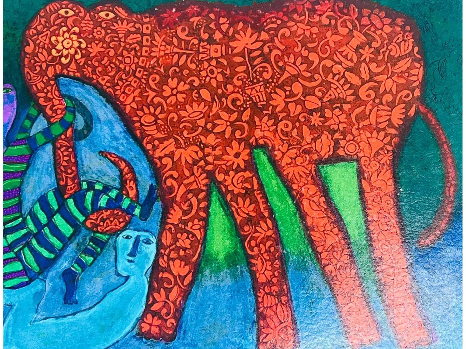 Shahid parvez - red elephant - kleurenzeefdruk