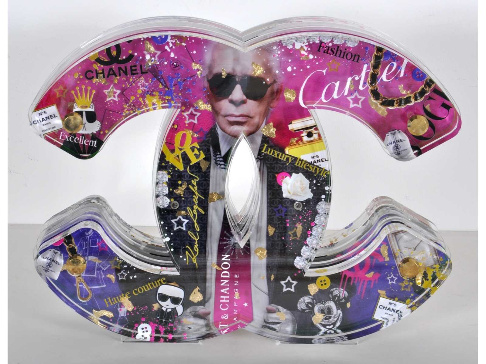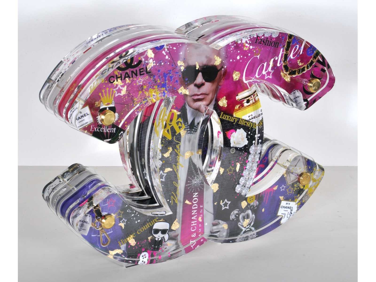 Meerlagig en transparant sculptuur met PopArt motieven - limited edition – hoogwaardige afwerking – gesigneerd en genummerd op bijhorende plaat/ certificaat – galerieprijs: € 2.500 No Kunstenaar: Ad Van Hassel Titel van werk: Chanel Techniek: acrylaat sculptuur Handtekening: true Gesigneerd: Gesigneerd Lengte: 40cm Breedte: 10cm Hoogte: 41cm Sokkel: true
