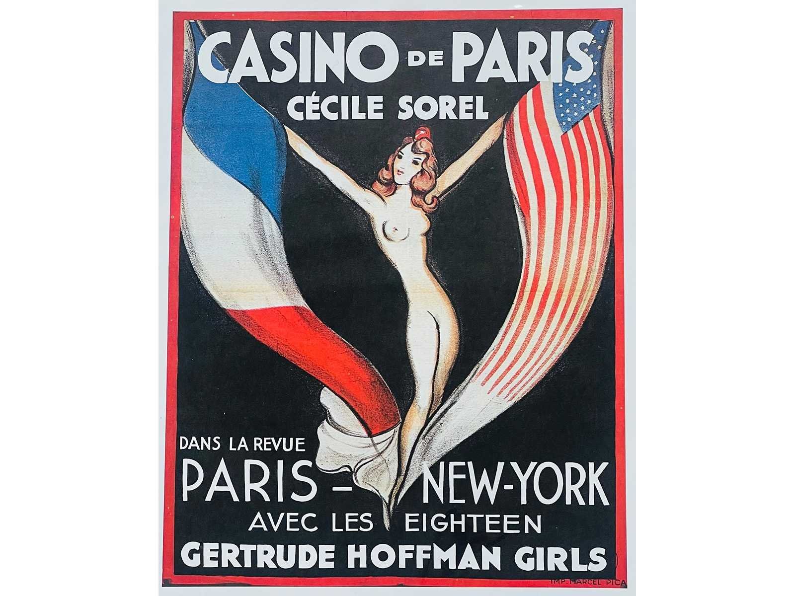 2 gekartonneerde en geplastificeerde affiches in fijne passe-partout: 1) Casino de Paris (Cécile Sorel) 2) Folies Bergère - afmeting 34x45,5 cm per affiche No Kunstenaar: Lot affiches