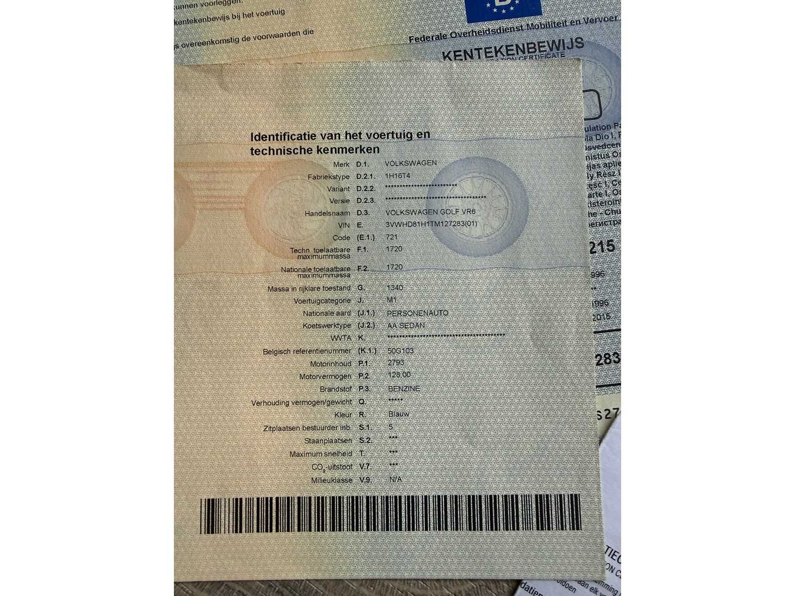 UNIEKE VOLKSWAGEN GOLF 3 VR6 IN NIEUWSTAAT SHOW AUTO MET AIR RECHTE LIJN UITLAAT WAGEN IS IN 2023 TOTAAL VERNIEUWD ZOWEL BINNEN ALS BUITEN IN NIEUWSTAAT BOORDDOCUMENTEN COMPLEET AANWEZIG START EN RIJD GOED Nee Merk: Volkswagen Model: VR6 GOLF Type: GOLF 3 Bouwjaar: 1996 Afgelezen kilometerstand: 171000km Cilinderinhoud: 2793cc Vermogen (kW): 128kW Brandstof: Benzine Chassisnummer: 3VWHD81H1TM127283 Datum eerste toelating: 28-02-1996 Aandrijving: VOORWIEL Aantal zitplaatsen: 5 Kleur: BLAUW Transmissie: MANUEEL Emissieklasse: 3 Aantal cilinders: 1 Nationaliteit documenten: BELGIE Gelijkvormigheidsattest aanwezig: true Carpass: true Start en rijdt: JA Andere boorddocumenten: COMPLEET startinformatie : JA Zichtbare schade: GEEN Inschrijvingsbewijs - deel 1 : AANWEZIG Inschrijvingsbewijs - deel 2: AANWEZIG