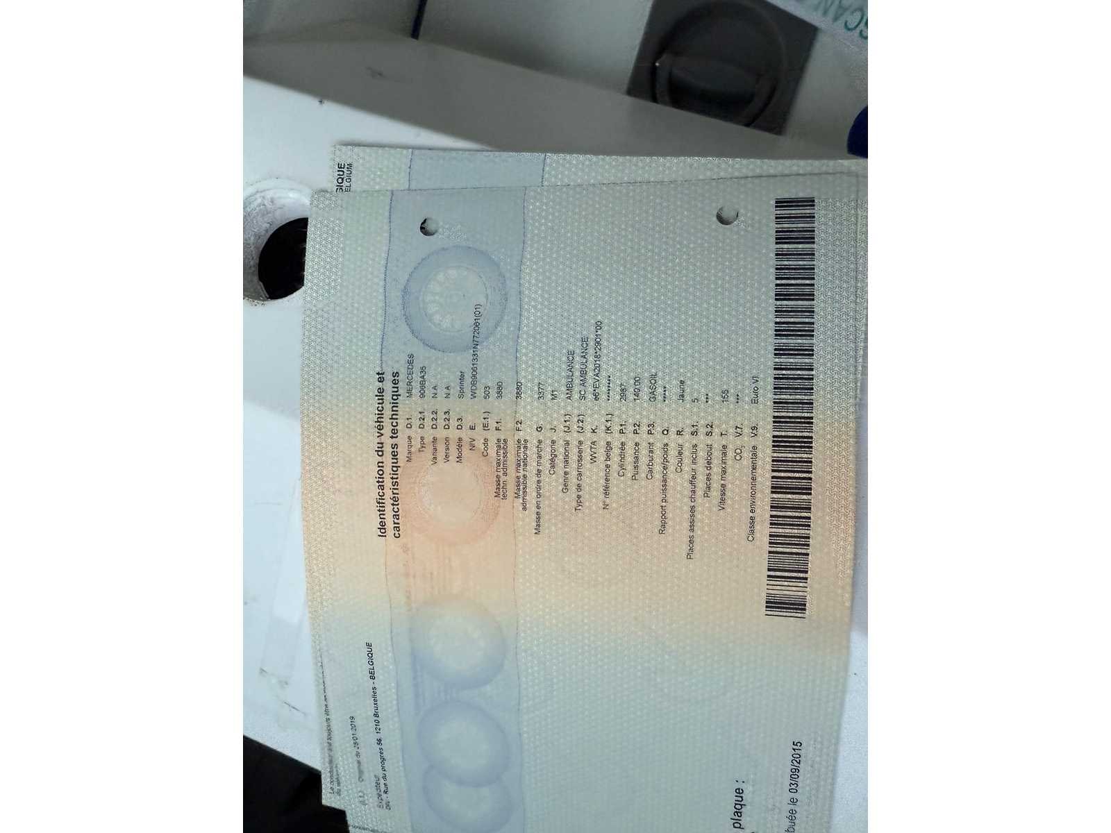 PERFECTE AMBULANCE ZEER MOOIE EN GOEDE STAAT MOTORINHOUD 3000 CC EURO 6 AUTOMAAT papieren en 2 sleutels aanwezig Nee Merk: Mercedes Type: Sprinter Bouwjaar: 2019 Chassisnummer VIN: WDB9061331N772061 Datum eerste inschrijving: 01/01/2018 Datum eerste toelating: 28-01-2019 Motorvermogen (kW): 140kW Diesel: true Kilometerstand bij opname: 245900km Parkeersensoren: true Xenon verlichting: true Eigen gewicht: 3377kg