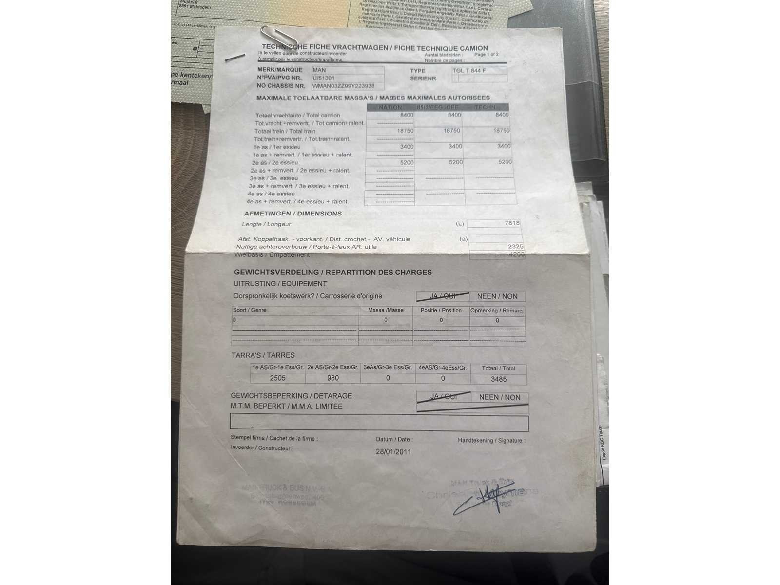 BOORDDOCUMENTEN COMPLEET AANWEZIG START EN RIJD GOED Nee Merk: MAN Type: TGL T 844 F Bouwjaar: 2008 Chassisnummer VIN: WMAN03ZZ99Y223938 Cilinderinhoud: 4580cc Type transmissie: Handmatig Fuel Type: Diesel Hydraulische laadklep: true Nationaliteit documenten: BELGIE Kentekenpapieren compleet?: true Aantal zitplaatsen: 3 Zelf rijdend exporteren: Mogelijk Handgeschakelde versnellingsbak: true
