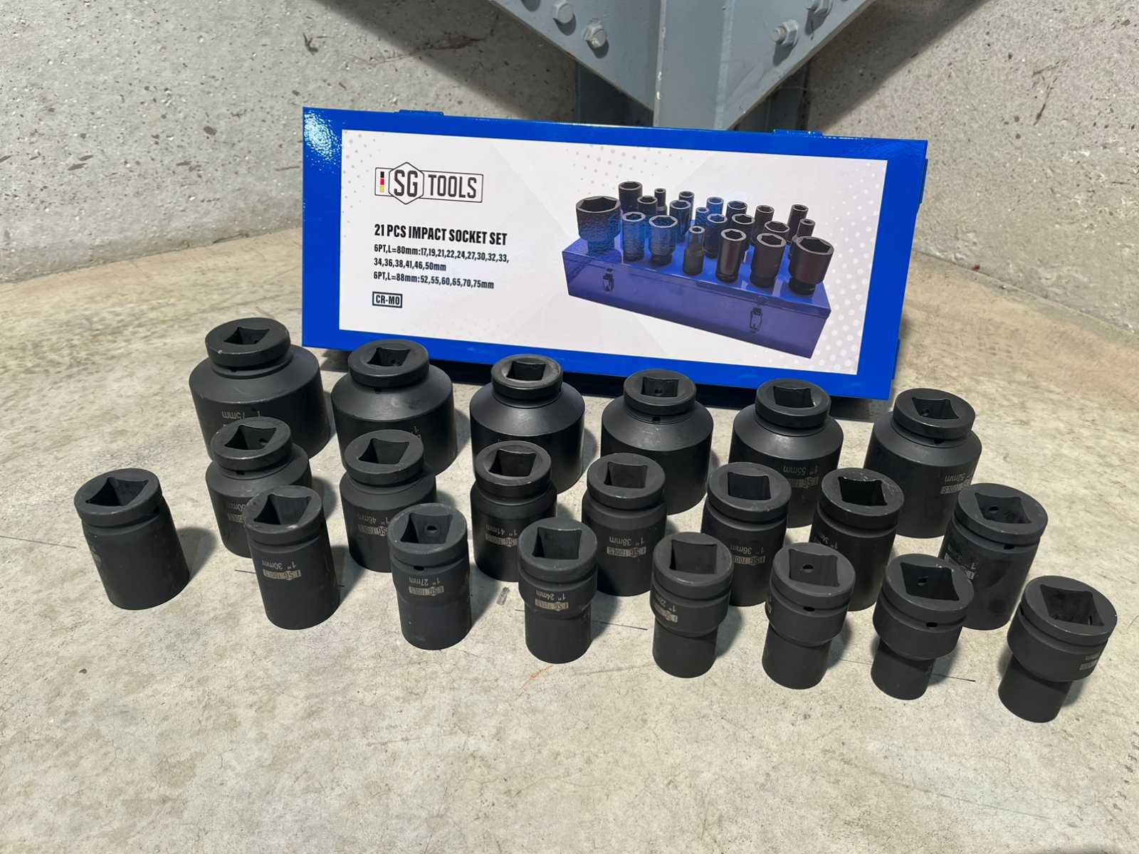<li><b>21-delige set krachtdoppen</b></li> <li><b>materiaal:</b> ChromeMolybdeen (CrMo / CroMo / Chromoly)</li> <li><b>koffer:</b> metalen koffer met handvaten</li> <li><b>opname doppen:</b> 1” inch</li> <li><b>metrische maten:</b> 17 / 19 / 21 / 22 / 24 / 27 / 30 / 32 / 33 / 34 / 36 / 38 / 41 / 46 / 50 / 52 / 55 / 60 / 65 / 70 / 75</li> <li><b>staat:</b> ongebruikt in de originele verpakking</li> Nee Merk: Stahlgruppe Met koffer: true Delig: 21 Opname “: 1'' Krachtdop uitvoering: true
