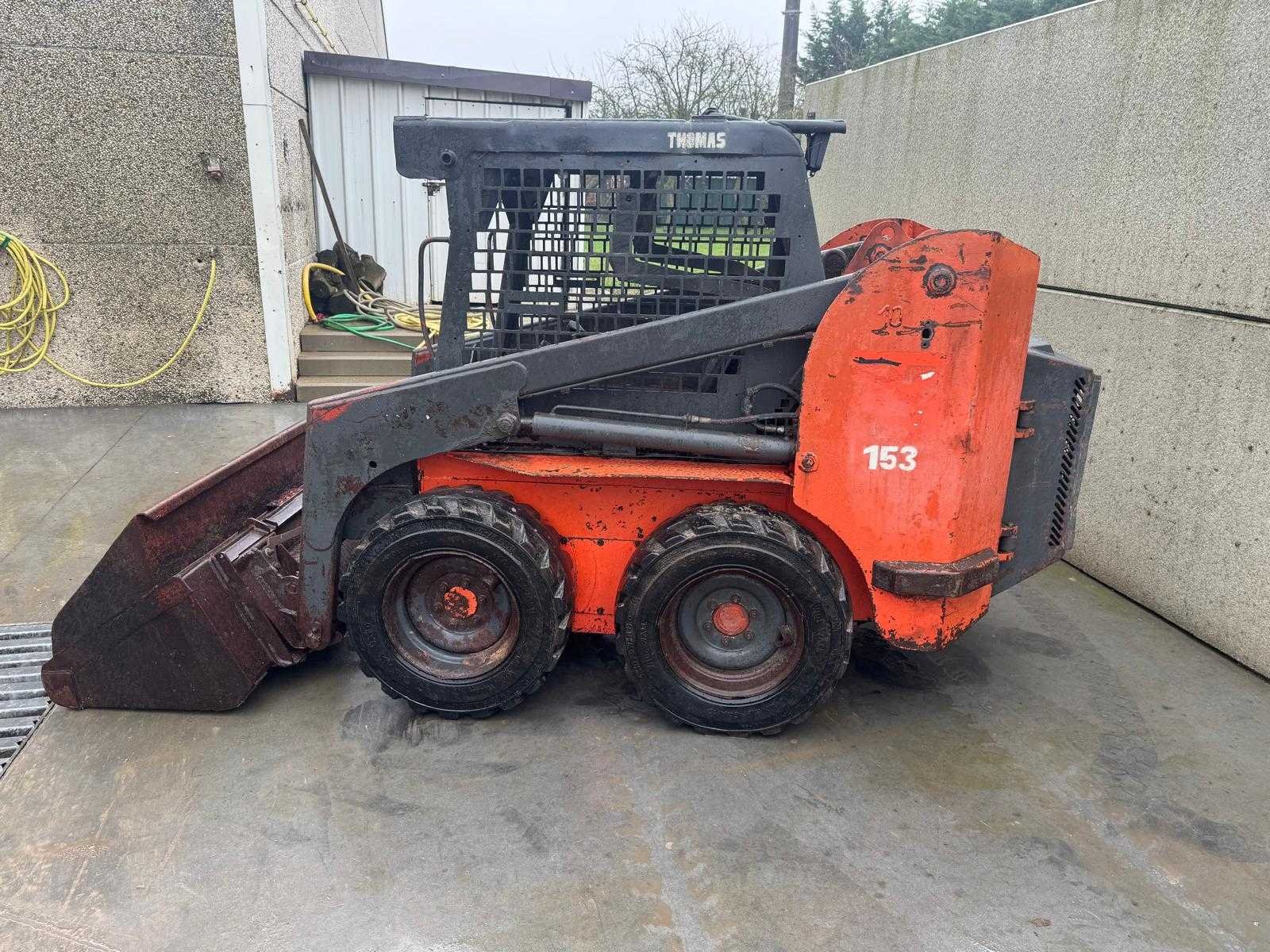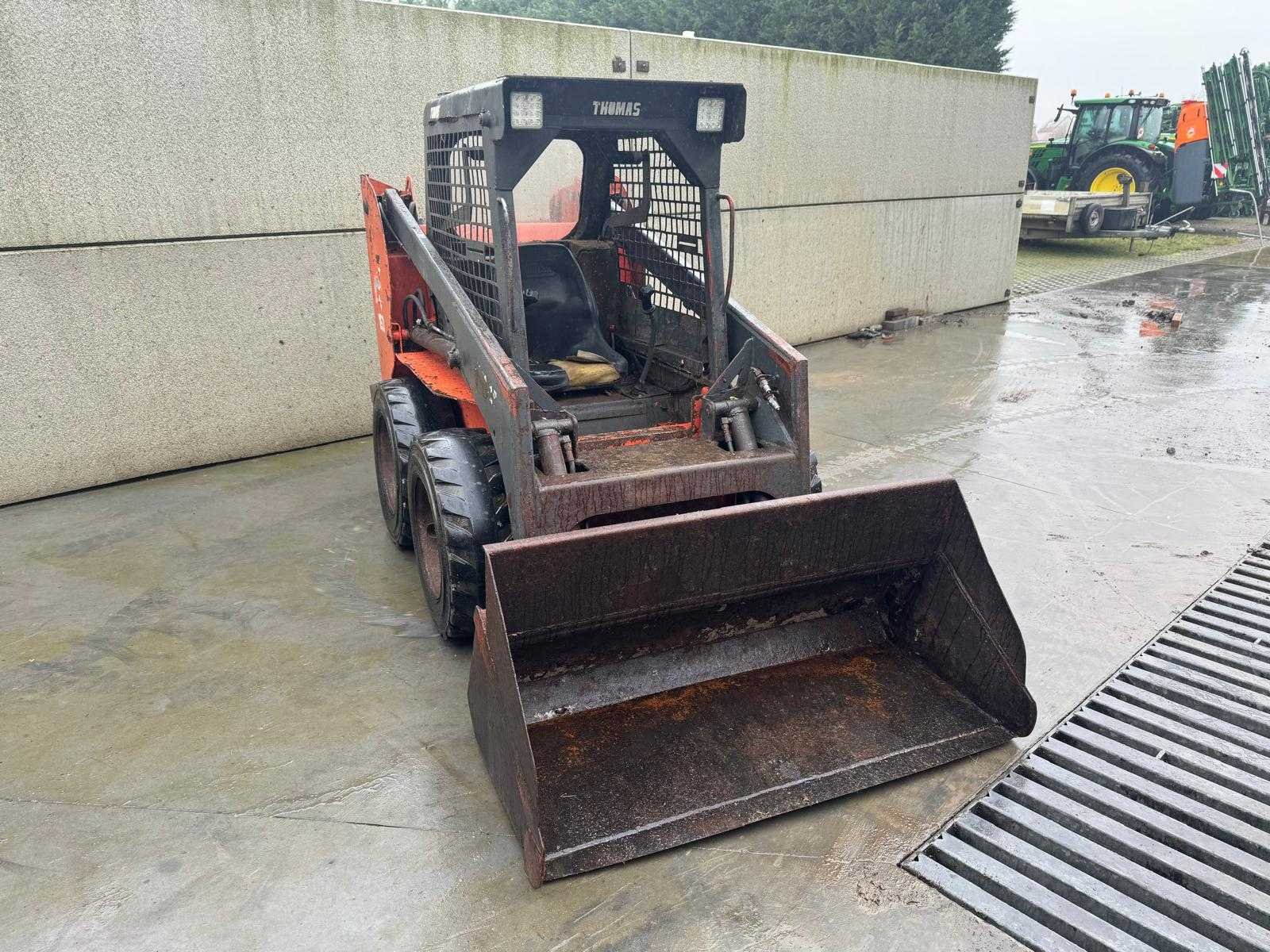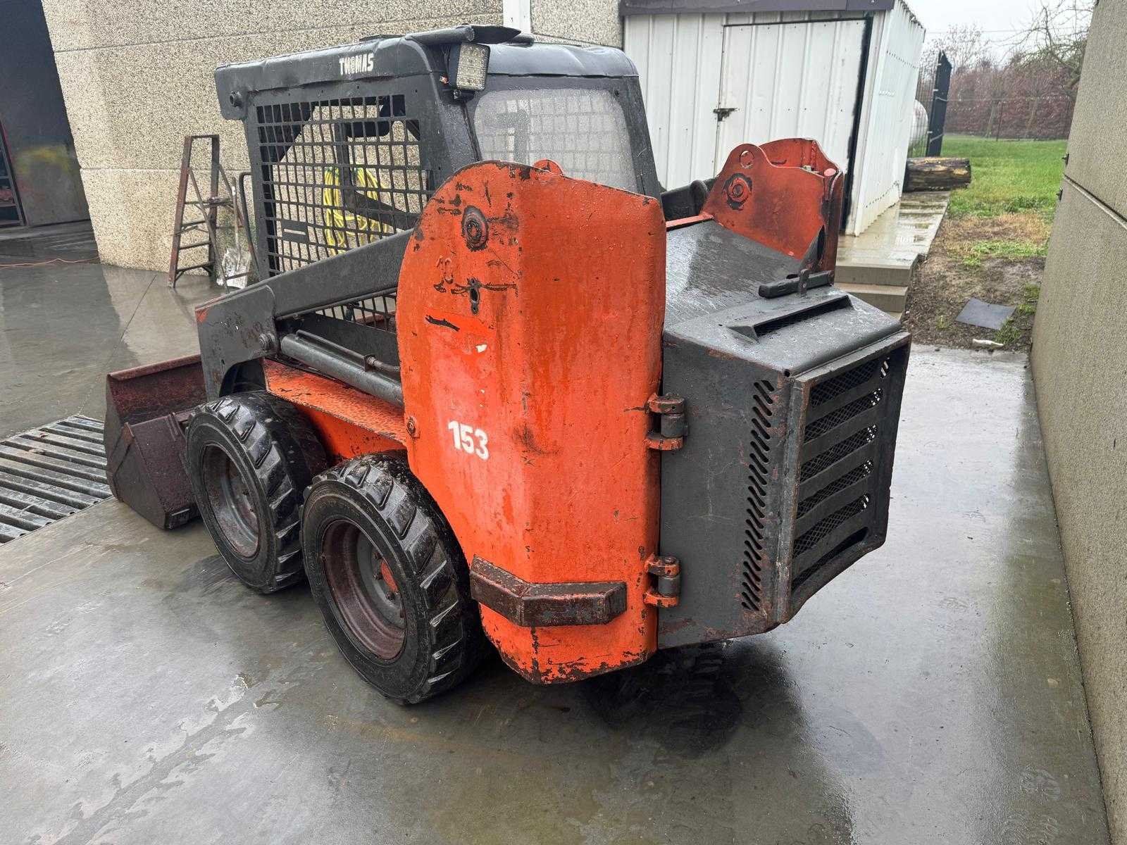 - Machine starts and drives good No Merk: Thomas Type: T153 Bouwjaar: 2001 Serienummer: LN001029 Merk motor: Kubota Motorvermogen (kW): 32.6kW Graafbak afm. l: 640mm Graafbak afm. b: 1500mm Graafbak afm. h: 690mm Bandenmaat: 10-16.5 Cabine: true Afgelezen urenstand: 6905 Eigen gewicht: 2504kg Totale afmeting L: 2400mm Totale afmeting Breedte: 1350mm Totale afmeting Hoogte: 1850mm Leveringsvoorwaarden: Geladen op vrachtwagen