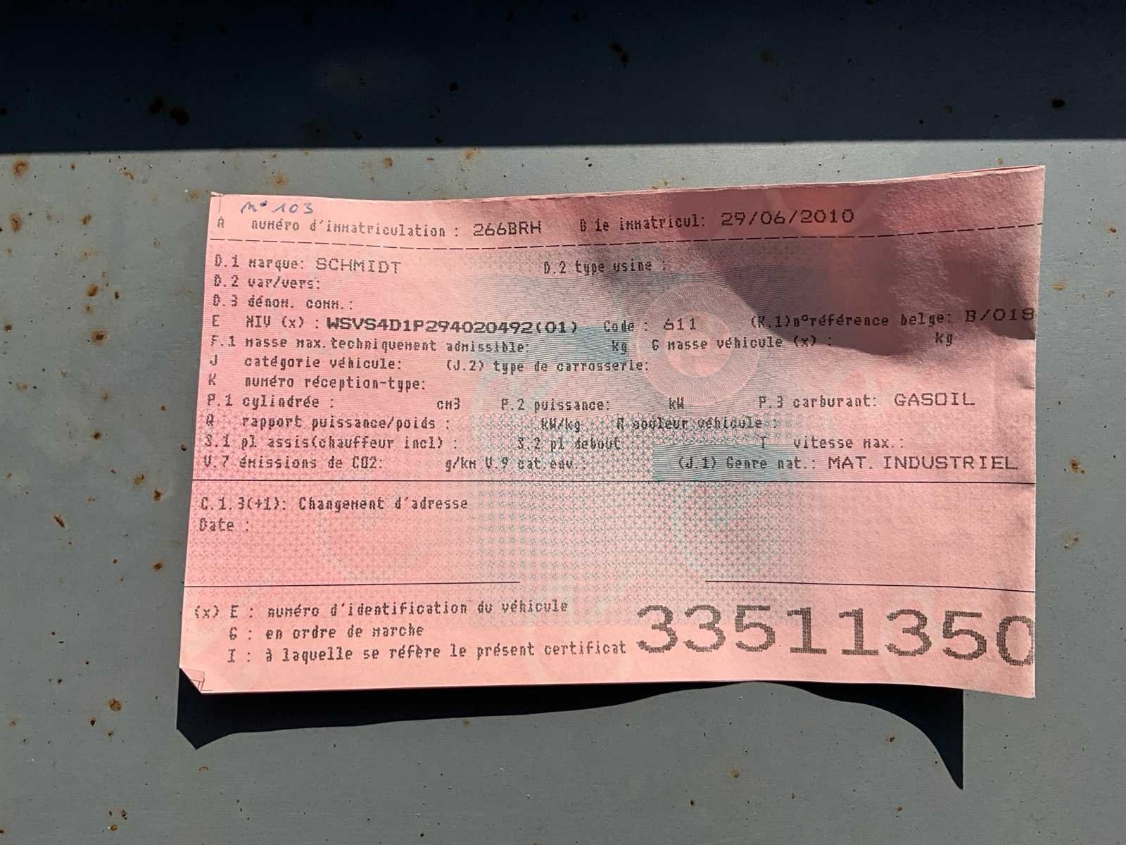 Werking van deze veegmachine is ongekend. No Merk: Schmidt Type: Cleango 400 Bouwjaar: 2010 Brandstofmotor aangedreven: true Brandstof: Diesel