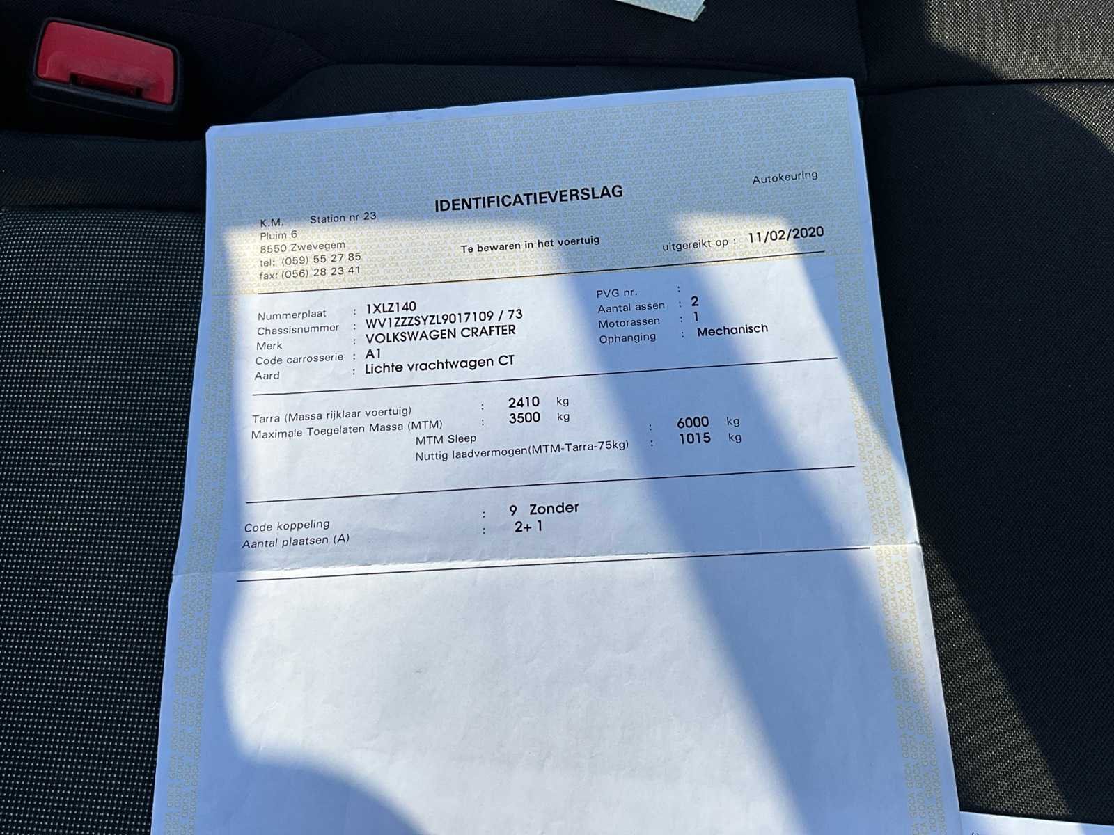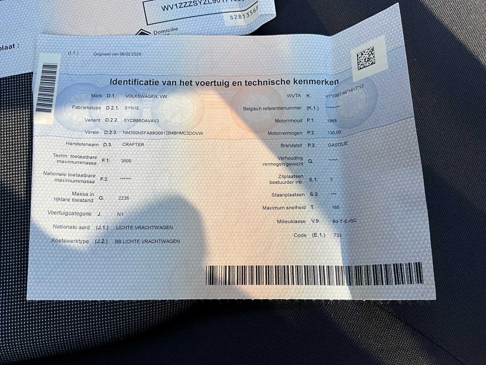 Nee Merk: Volkswagen Model: Crafter Bouwjaar: 2020 Afgelezen kilometerstand: 259055km Cilinderinhoud: 1968cc Vermogen (kW): 130kW Brandstof: Diesel Chassisnummer: WV1ZZZSYZL9017109 Datum eerste toelating: 06/02/2020 Aantal zitplaatsen: 3 Transmissie: Automaat Emissieklasse: Euro 6d Aantal deuren: 4 Aantal sleutels: 2 Nationaliteit documenten: Belgisch Start en rijdt: Ja startinformatie : Start & rijdt Vavato voert geen technische keuring uit.: true Airconditioning: true Navigatie: true Inschrijvingsbewijs - deel 1 : Aanwezig Inschrijvingsbewijs - deel 2: Aanwezig