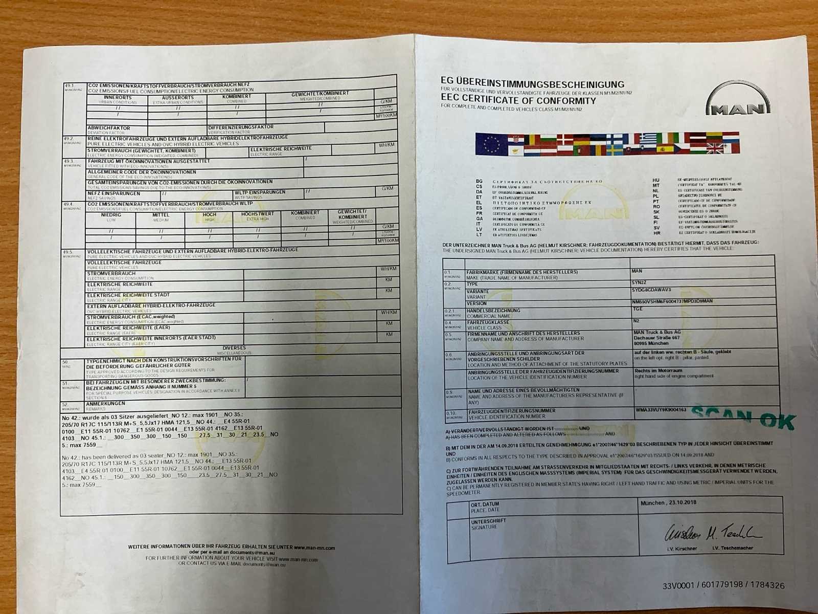 MAN TGE 6.180 Volledig voorzien van PTO instalatie 30 KVA( 2stopcontacten 32Amp & 16/ Amp) Ingerichte laadruimte Schroefbank aanwezig Deurbeveiligingssloten Tacho aanwezig Leder interieur Navigatie Airco No Merk: MAN Type: 6.180 Model: TGE Bouwjaar: 2018 Chassisnummer: WMA33VUY9K9004163 Afgelezen kilometerstand: 108517km Cilinderinhoud: 1968cc Vermogen (kW): 130kW Brandstof: Diesel Datum eerste inschrijving: 24/12/2018 Datum eerste toelating: 24/12/2018 Transmissie: Handgeschakeld Aantal zitplaatsen: 3 Kleur: Grijs Nationaliteit documenten: Belgisch Stuurwiel: Links Aantal sleutels: 2 Kentekenpapieren compleet?: true Boorddocumenten aanwezig?: true Onderhoudshistorie: Ja Startinformatie: Start en rijd Self drive export possible : true
