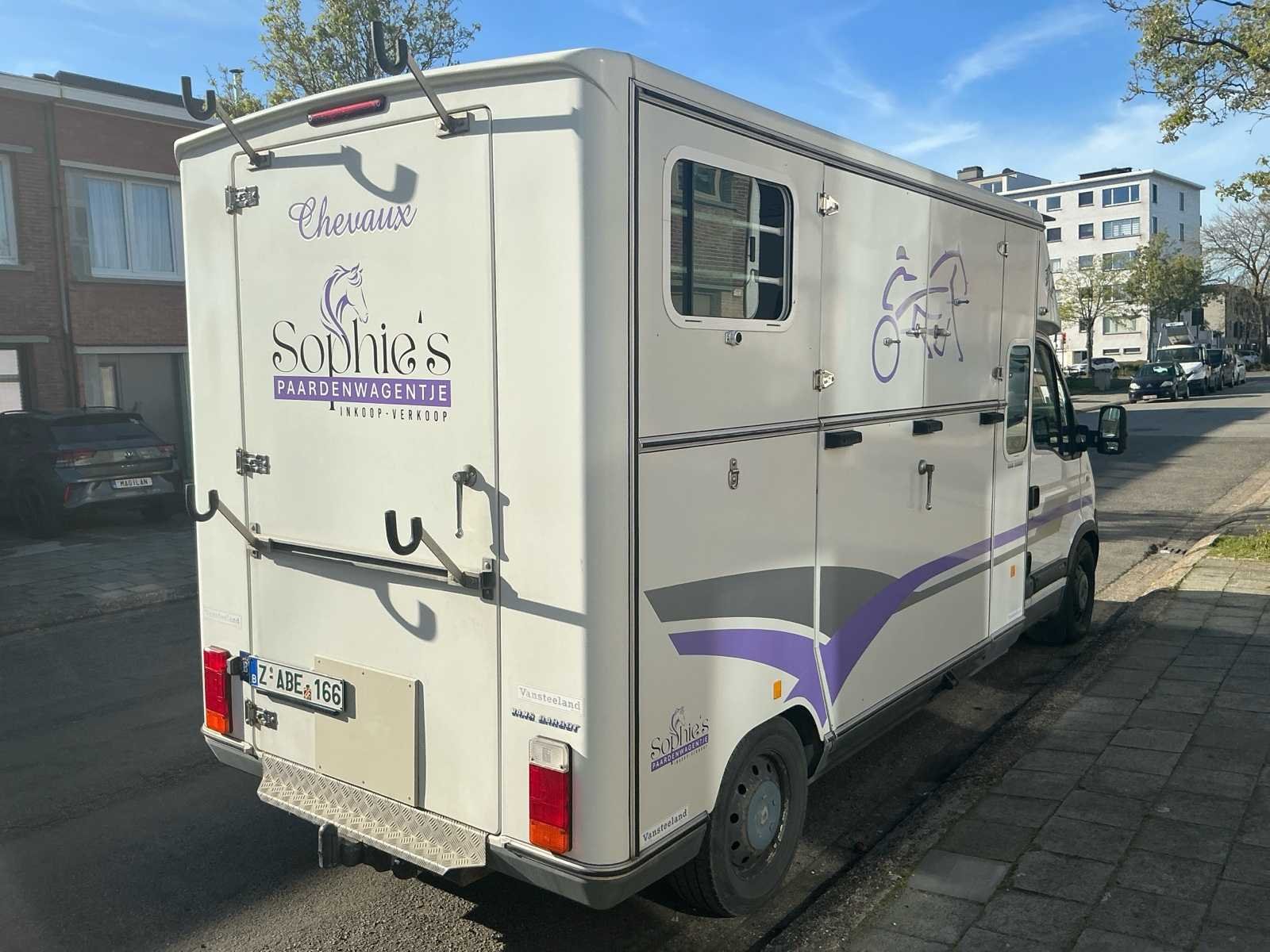 Mooie Renault Master paardenwagen te koop van de stevige en betrouwbare Franse opbouwer Barbot! Deze stevige en betrouwbare wagen is een Renault Master van 2004 met een 122××× kilometers op de teller. Cabine: - Beschikt over 5 zitplaatsen (dubbele cabine) - Nieuwe radio geiinstaleerd. - Electrische ruiten - Raampje naar het paardengedeelte. - Slaapruimte boven de cabine. - Reservewiel onder bank achteraan. Paardengedeelte: - Borstbalkuitvoering. - Grote scheidingswand zodat de paarden met hun hoofd niet aan elkaar kunnen (kan eraf gehaald worden) - 2 hekjes aan de zijkant makkelijk om alleen te kunnen laden (kan eraf gehaald worden) - Doorgang via de deurtjes van zadelkamer naar paardengedeelte. - 2 ventilatie luiken en 2 ramen aan de zijkant. - Laadvermogen 625 kg. - 2 opbergruimten in de zadelkamer. - Sulkyhaken (kan eraf gehaald worden) Super leuke stevige wagen die klaar is om op pad te gaan en leuke avonturen te beleven! De wagen is gekeurd voor verkoop en heeft een volledig onderhoud en nazicht bij de garage gekregen. Alsook voorraan 2 nieuwe banden gekregen en is er een nieuwe radio geiinstalleerd. No Merk: Renautl Model: Master Bouwjaar: 2004 Afgelezen kilometerstand: 122403km Cilinderinhoud: 2953cc Vermogen (kW): 100kW Brandstof: Diesel Chassisnummer: VF1EDCSK631646732 Laadvermogen: 1262kg Datum eerste toelating: 01/06/2004 Vermogen (pk): 136hp Energielabel: Euro 3 Aandrijving: FWD Aantal zitplaatsen: 6 Kleur: Wit/paars Transmissie: Manueel Drive type: Front wheel USA titel: Neen Stuurwiel: Links Emissieklasse: Euro 3 Aantal deuren: 4 Aantal sleutels: 2 Ledig gewicht: 1738kg Carrosserie: Paardenvervoer Nationaliteit documenten: Belgische Gelijkvormigheidsattest aanwezig: true Carpass: true Start en rijdt: Ja Technische fiche: true Andere boorddocumenten: Neen startinformatie : Start en rijdt Zichtbare schade: Zie foto’s Self drive export possible : true Airconditioning: true Inschrijvingsbewijs - deel 1 : Aanwezig Inschrijvingsbewijs - deel 2: Aanwezig