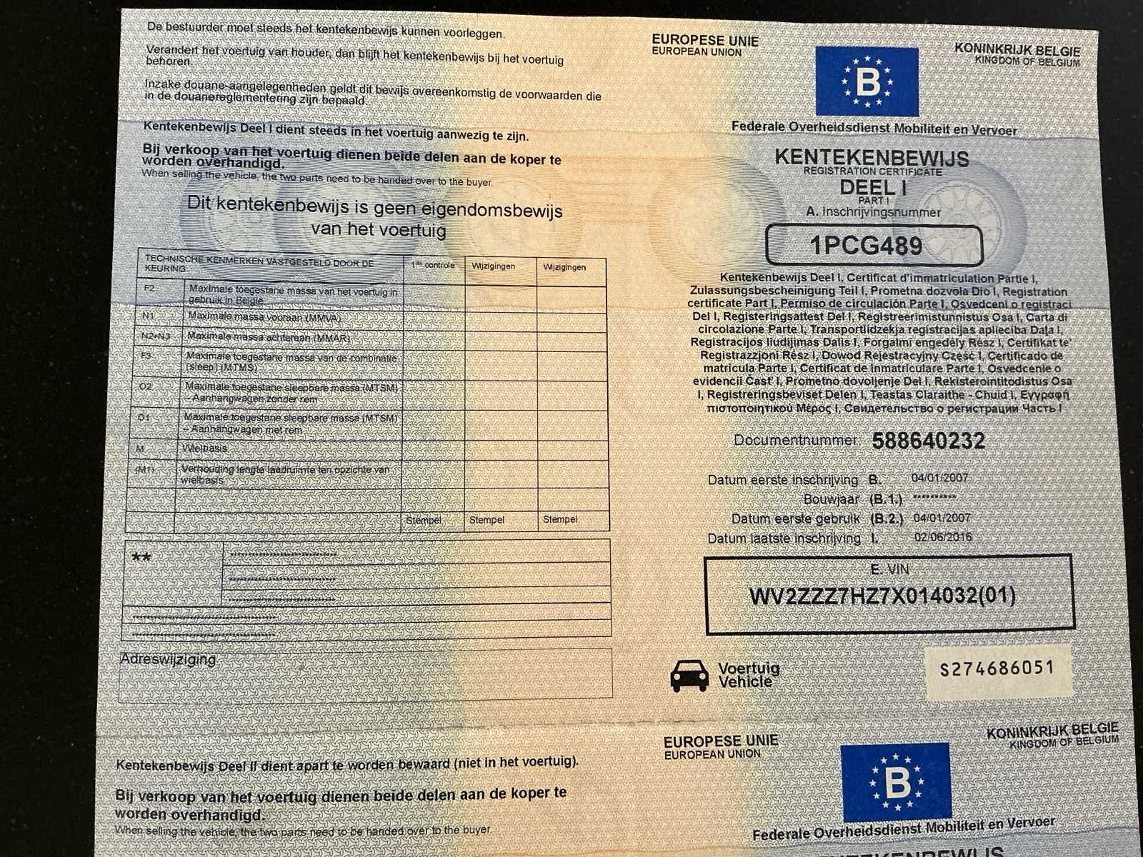 No Merk: Volkswagen Model: Caravel - Transporter Bouwjaar: 2007 Afgelezen kilometerstand: 472088km Cilinderinhoud: 2461cc Vermogen (kW): 128kW Brandstof: Diesel Chassisnummer: WV2ZZZ7HZ7W014032 Aantal zitplaatsen: 5 Aantal sleutels: 3 Nationaliteit documenten: BelgischJ Start en rijdt: Ja Zichtbare schade: Zie foto’s Vavato voert geen technische keuring uit.: true Inschrijvingsbewijs - deel 1 : Aanwezig Inschrijvingsbewijs - deel 2: Aanwezig