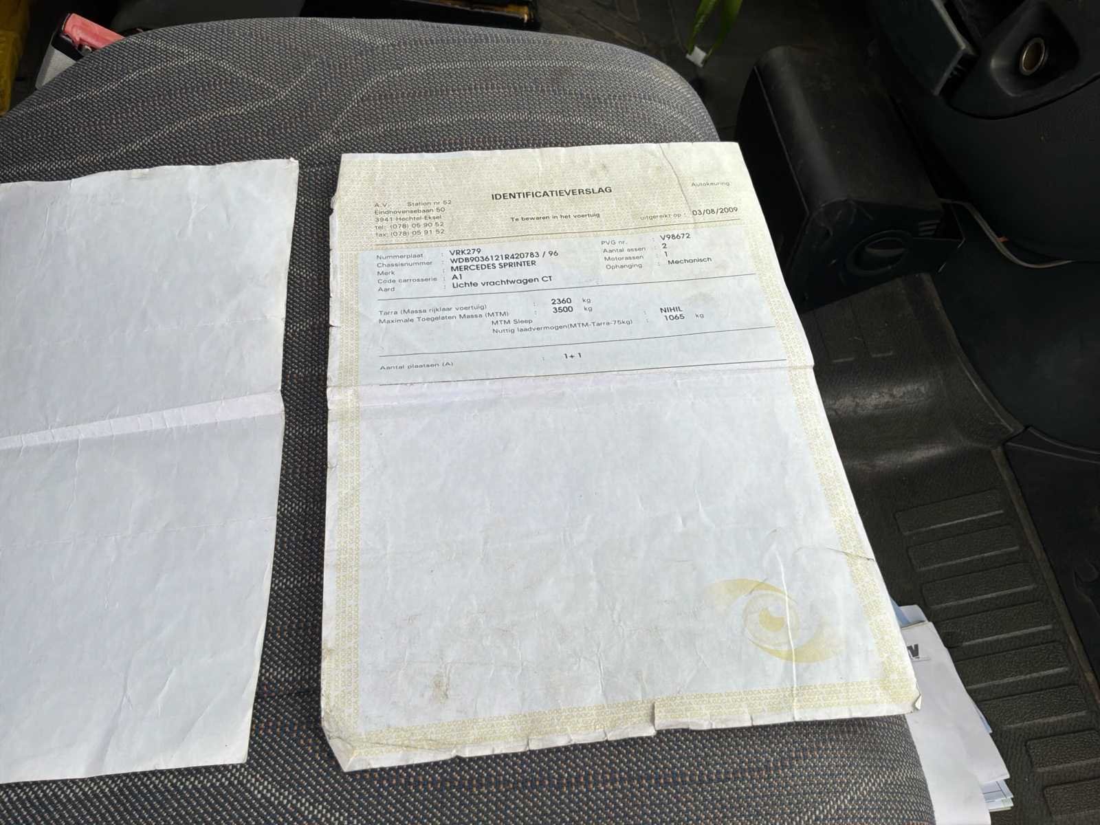 De bestelwagen heeft een rolstoellift en ook een overkapping aan de rechterkant. No Merk: Mercedes Type: Camionnette Model: Sprinter Bouwjaar: 2002 Chassisnummer: WDB9036121R420783 Afgelezen kilometerstand: 164307km Cilinderinhoud: 2141cc Vermogen (kW): 60kW Brandstof: Diesel Datum eerste inschrijving: 27/08/2002 Transmissie: Automatisch Aantal zitplaatsen: 2 Kleur: Zwart Nationaliteit documenten: België Stuurwiel: Links Aantal deuren: 5 Aantal sleutels: 2 Vermogen (pk): 82