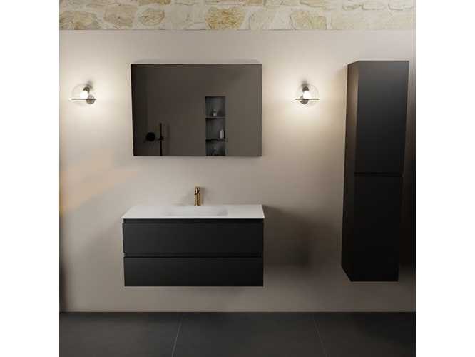Badkamerkast met massief oppervlak (kunststeen) wasbakje 100 cm, met kraangat, 2 lades (alleen kast en waskom inbegrepen) No Kleur: Zwart Lengte: 100cm Breedte: 45cm Hoogte: 50cm