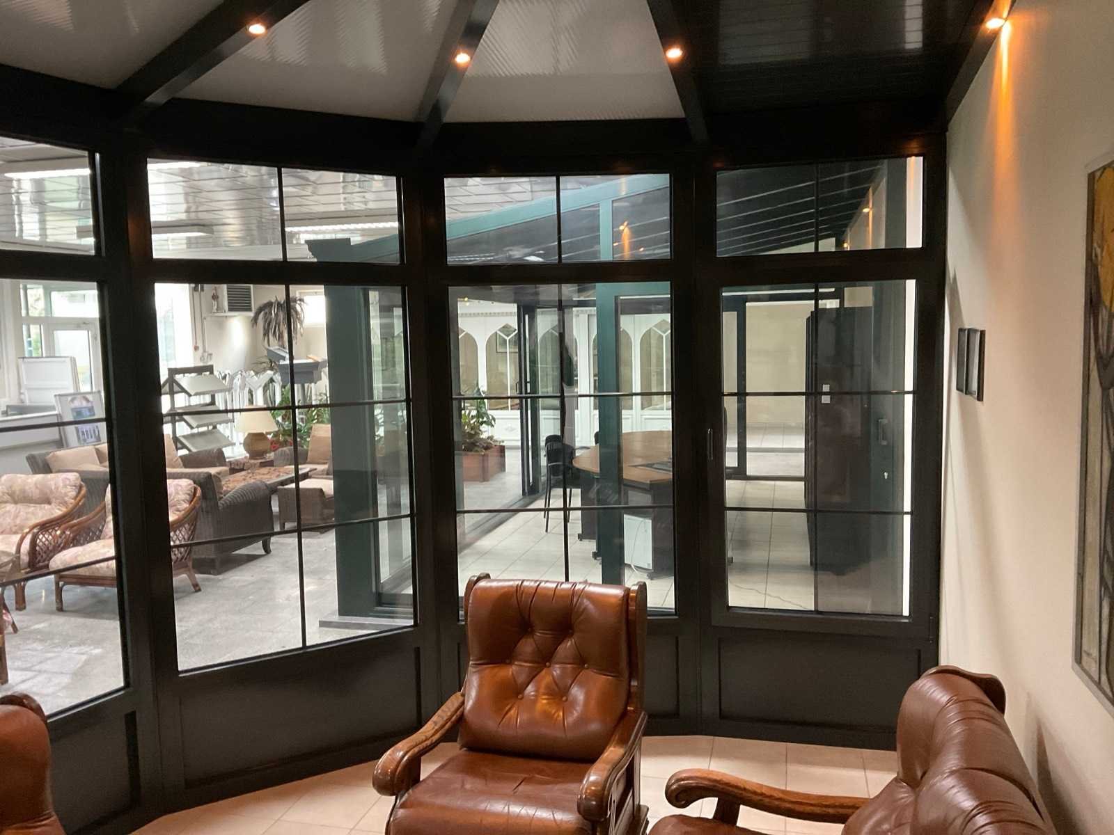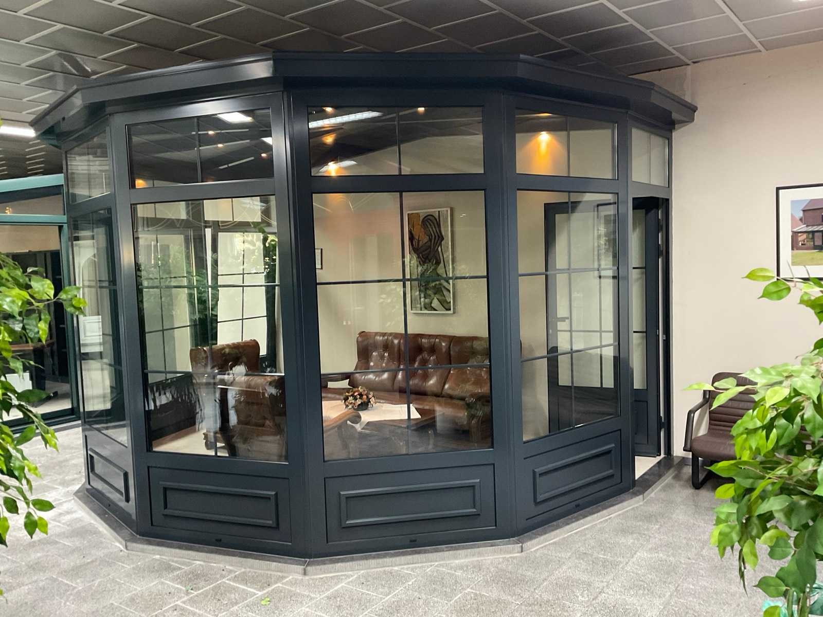 V.v. 1x loopdeur, 1x draai/kiepraam, beglazing met wienersprossen, spotjes en polycarbonaat dakplaten Nee Kleur: Antraciet Lengte: 320cm Breedte: 360cm Hoogte: 300cm