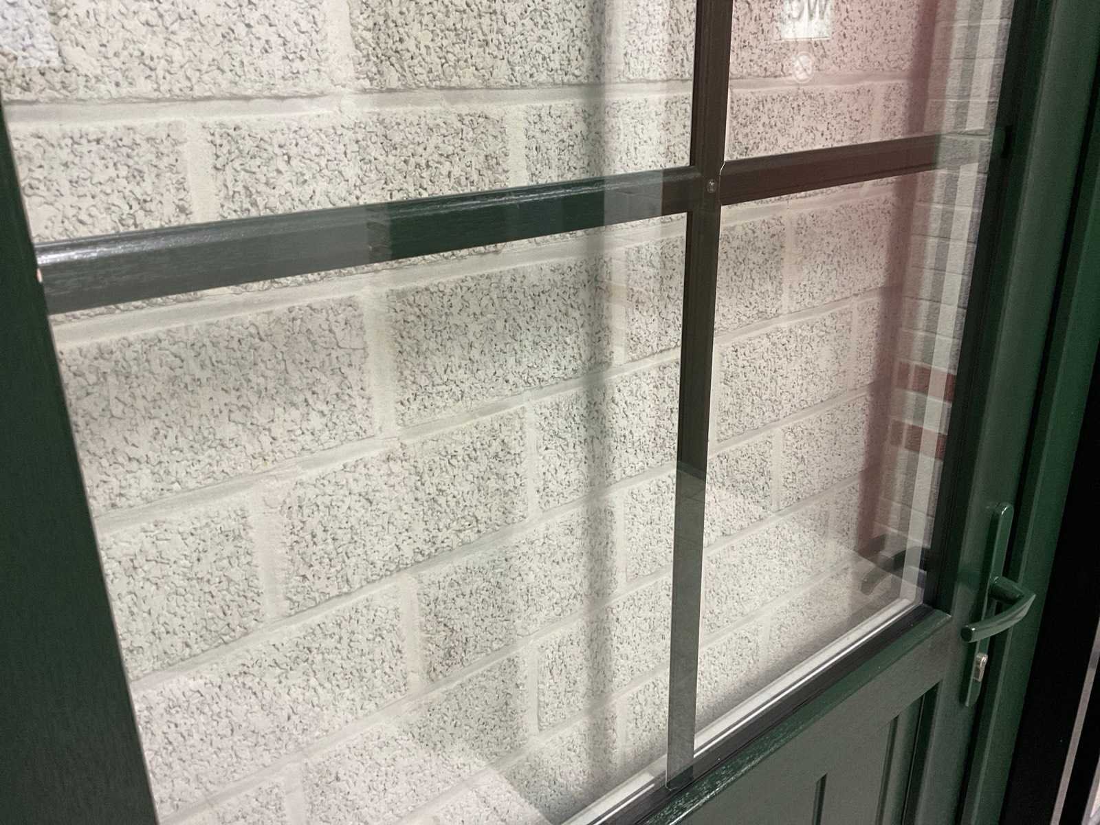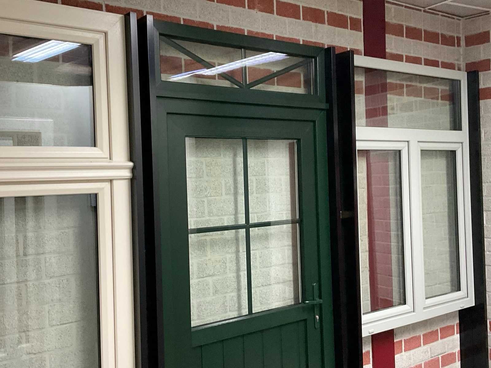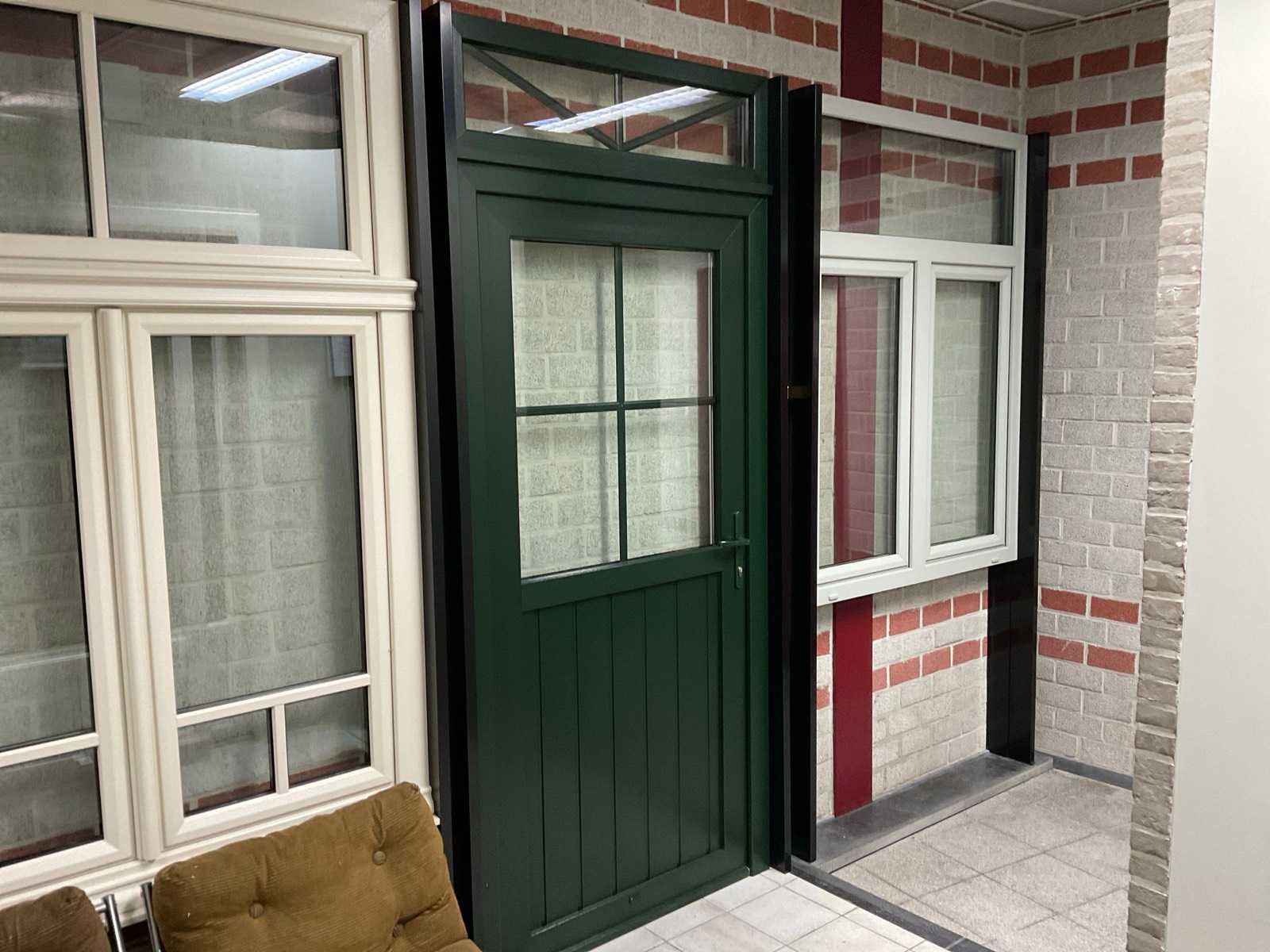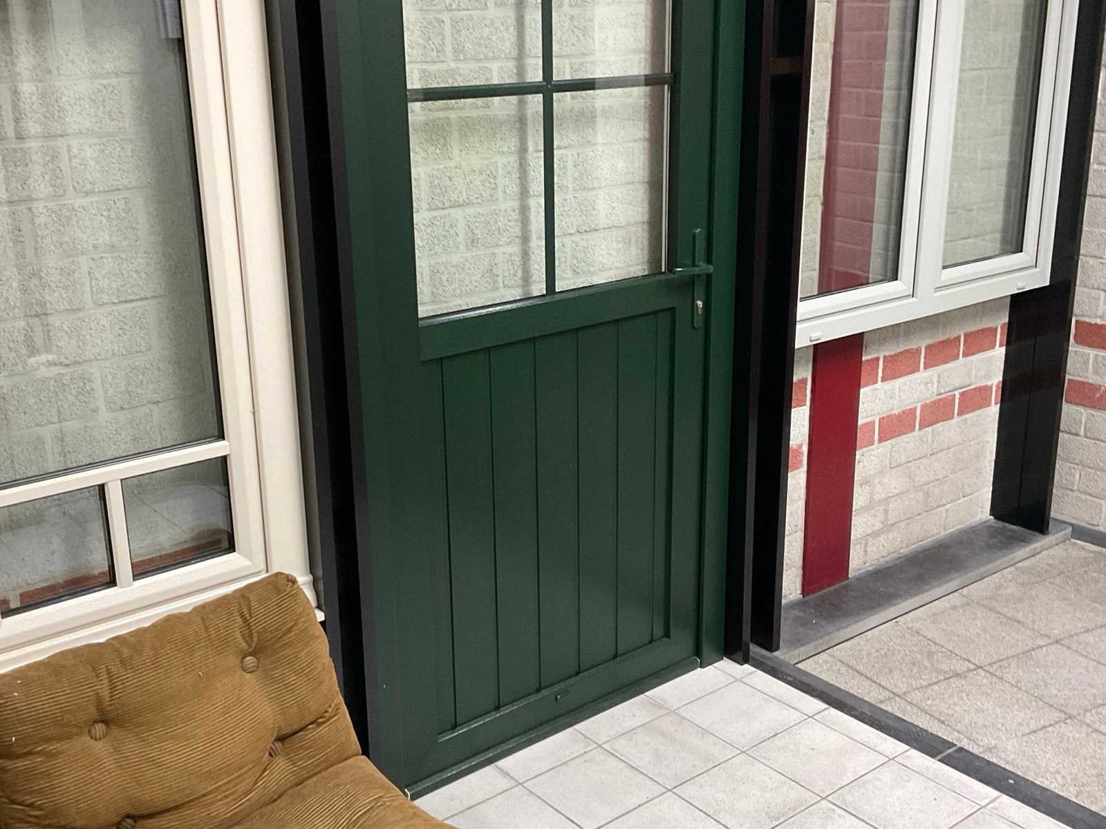 Kleur buiten groen, binnen wit. V.v. wienersprossen en houtnerf Nee Buitendeur: true Beglaasd: true Afmeting h: 2500mm Afmeting b: 1110mm