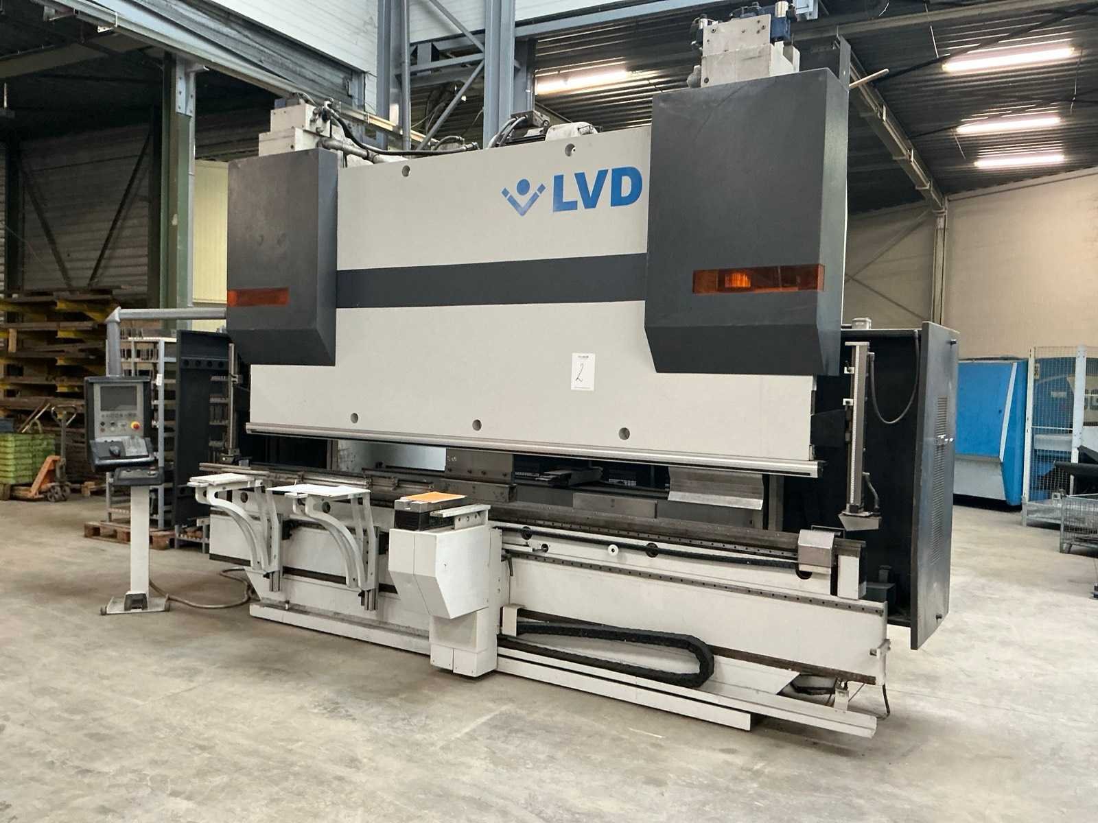 * Distance between columns: 3150mm * Distance ram-table: 585mm * Stroke: 400mm * Gap: 400mm * With hydraulic WILA upper & lower clamp * Inclusief partij tooling in 2 rekken No Merk: LVD Type: PPEB-EFL 220/40 Bouwjaar: 2007 Serienummer: 31632 Capaciteit.: 220t Werklengte: 4000mm Aantal assen: 12 Motorvermogen (kW): 47kW Aansluiting: 400V Machinegewicht: 20000kg Afmeting l: 2800mm Afmeting b: 5100mm Afmeting h: 3600mm