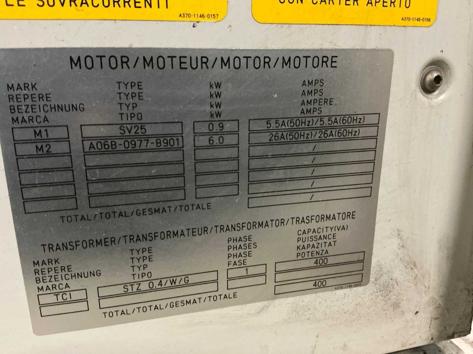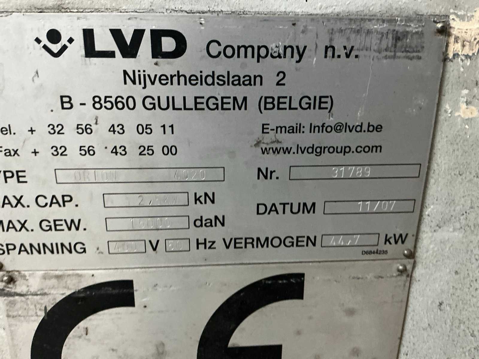 * Met Fanuc C2000 laser, s/n L07620742, 33kVA * Te demonteren en laden door koper * Inclusief Donaldson DFPRE 4 SPKT filterstofafzuiging * Inclusief Thermotec LI20B35 koeling Nee Merk: LVD Type: Orion 4020 Bouwjaar: 2007 Serienummer: 31789 Tafel afmeting l: 4000mm Tafel afmeting b: 2000mm Digitale uitlezing: true Motorvermogen (kW): 44.7kW Aansluiting: 400V Afmeting l: 10800mm Afmeting b: 3050mm Afmeting h: 2400mm