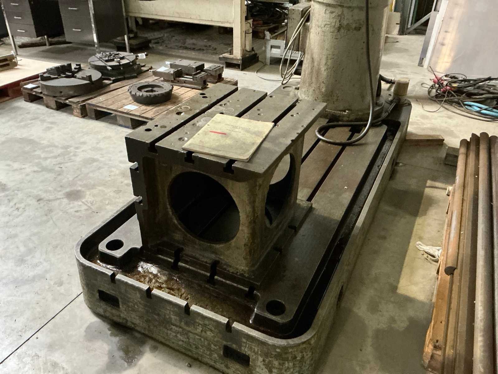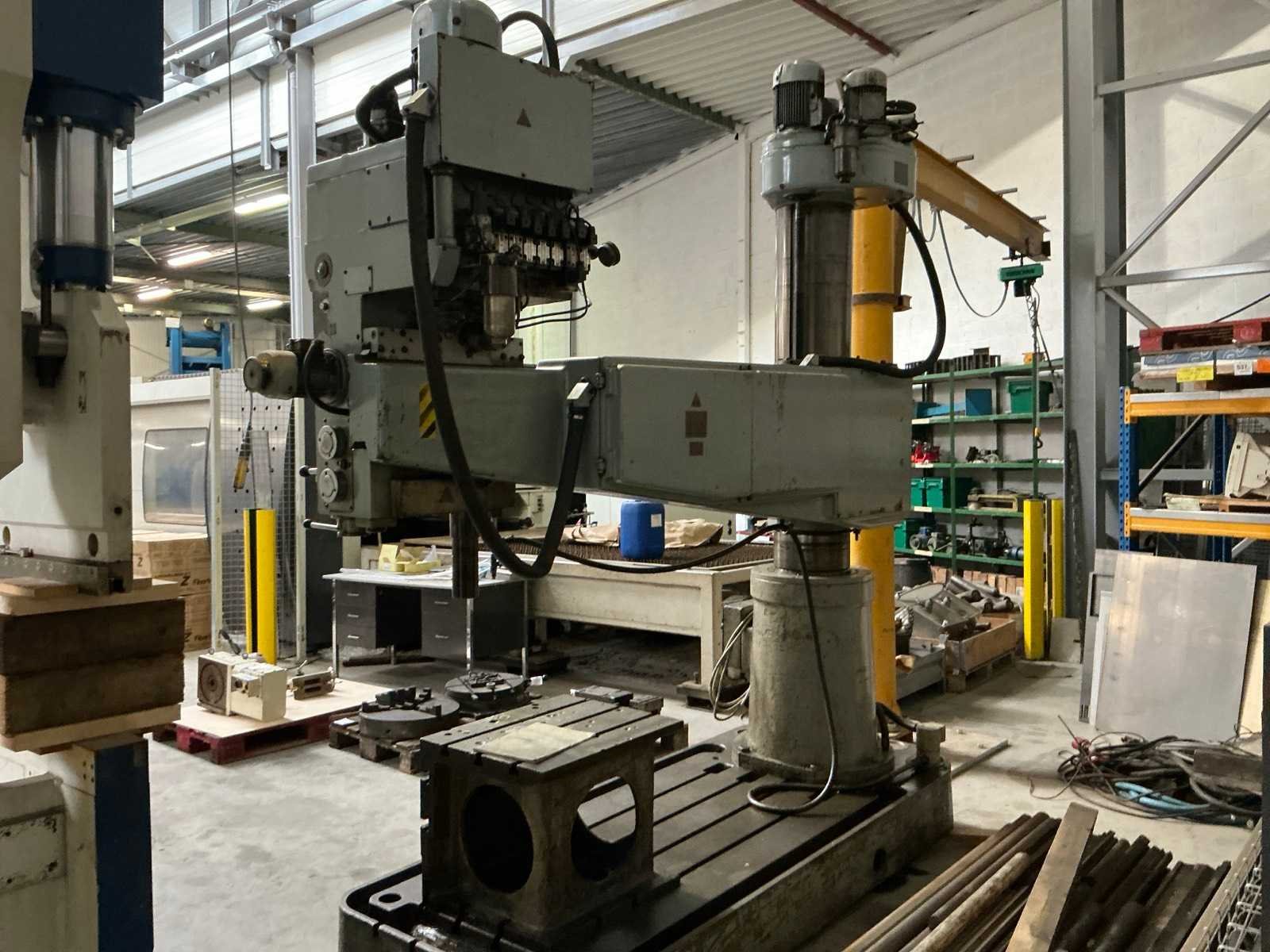Nee Merk: Stanko Type: 2A554 Boorcapaciteit: 50mm Aantal snelheden: 21 Snelheid van n =: 18rpm Snelheid tot n =: 2000rpm Opname mc: 5 T-gleuf opspantafelafmeting L: 1700mm T-gleuf opspantafelafmeting B: 830mm Aansluiting: 400V Afmeting l: 2900mm Afmeting b: 1100mm Afmeting h: 3100mm