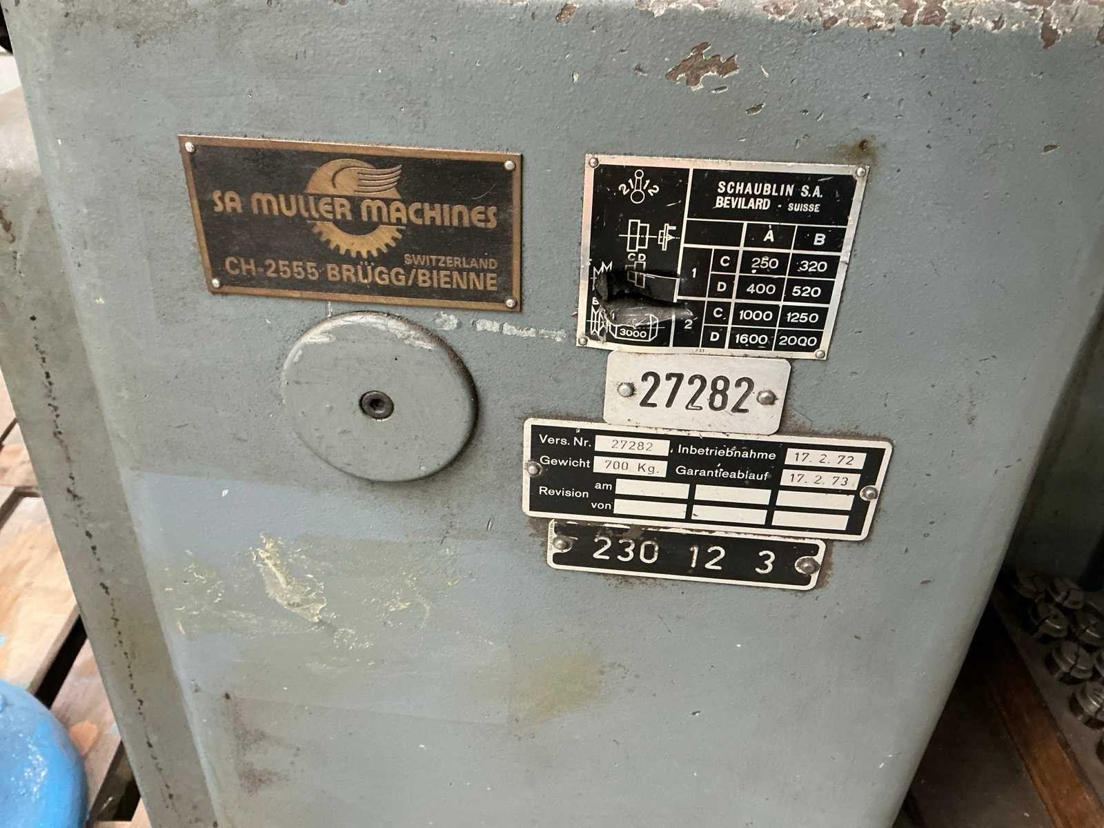 Nee Merk: Sa Muller / Schaublin Aansluiting: 380V Afmeting l: 1320mm Afmeting b: 650mm Afmeting h: 1460mm