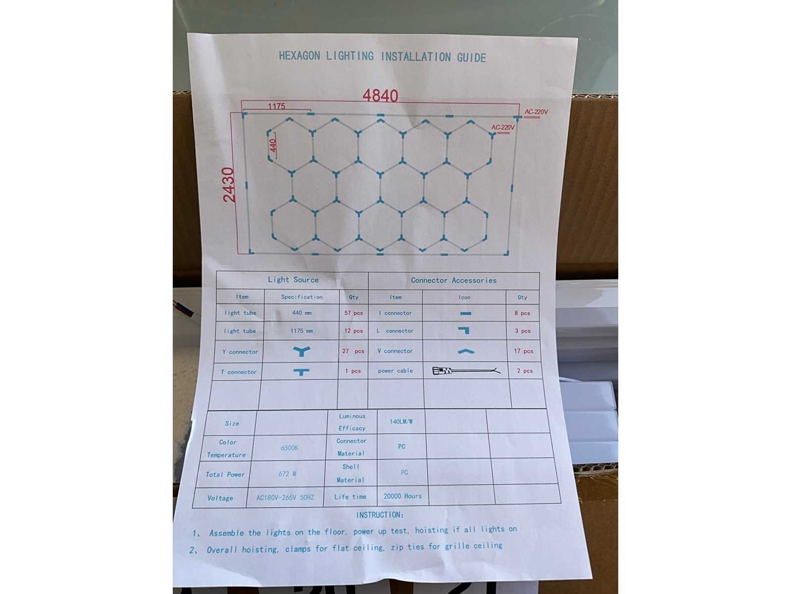 In originele verpakking van 120x27x20 cm, compleet met voeding en montagetools Nee Merk: Hexagon Lengte: 484cm Breedte: 243cm